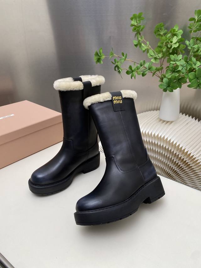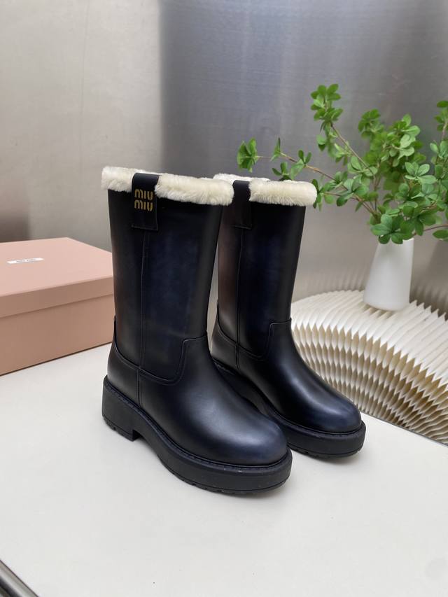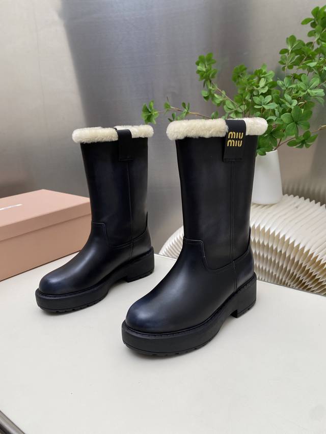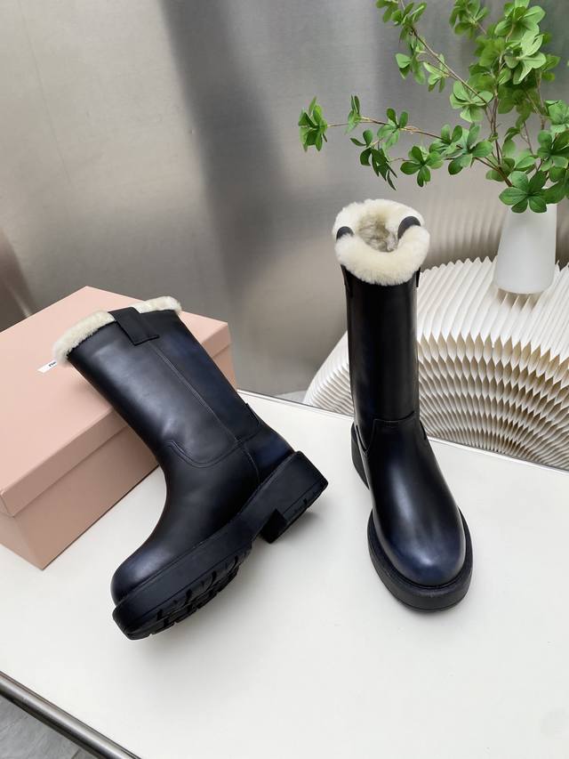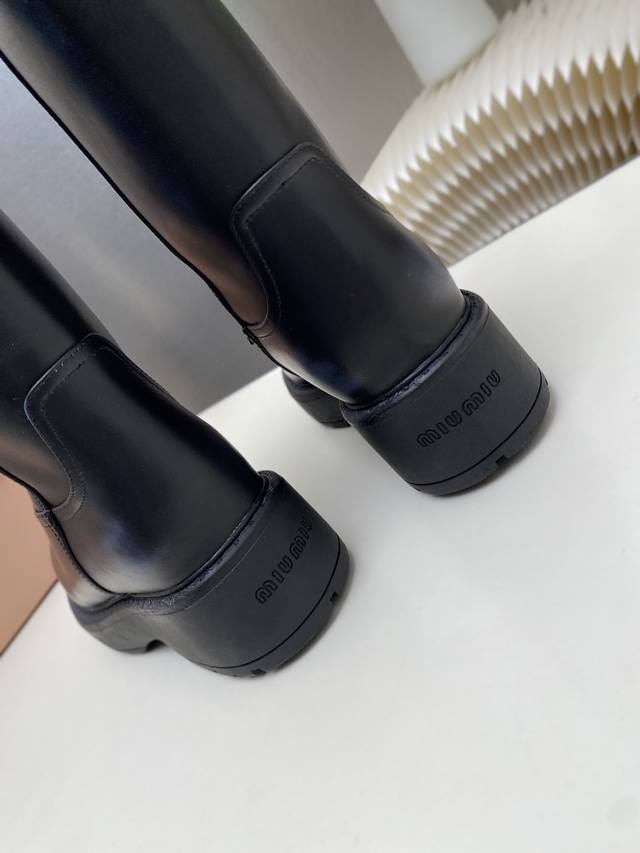 Factory price PP fur lining, leather lining 470 Miu Miu 2025 Fall/Winter runway new long boots. The most worthwhile boots to buy this year, bar none! Adorned by numerous internet celebrities and stars, this Miu Miu Fall/Winter limited edition is extremely difficult to find in stores. It looks stiff but is actually very soft and incredibly comfortable! Superb feel! The wide boot shaft provides a relaxed fit regardless of leg size and makes legs appear straight! Full of punk style! 10-inch boots. Material: Italian imported cowhide. Lining: Cow lining, fur lining. Outsole: Italian one-piece molded outsole. Available in two colors: 35-41. Custom orders are non-refundable and non-exchangeable.