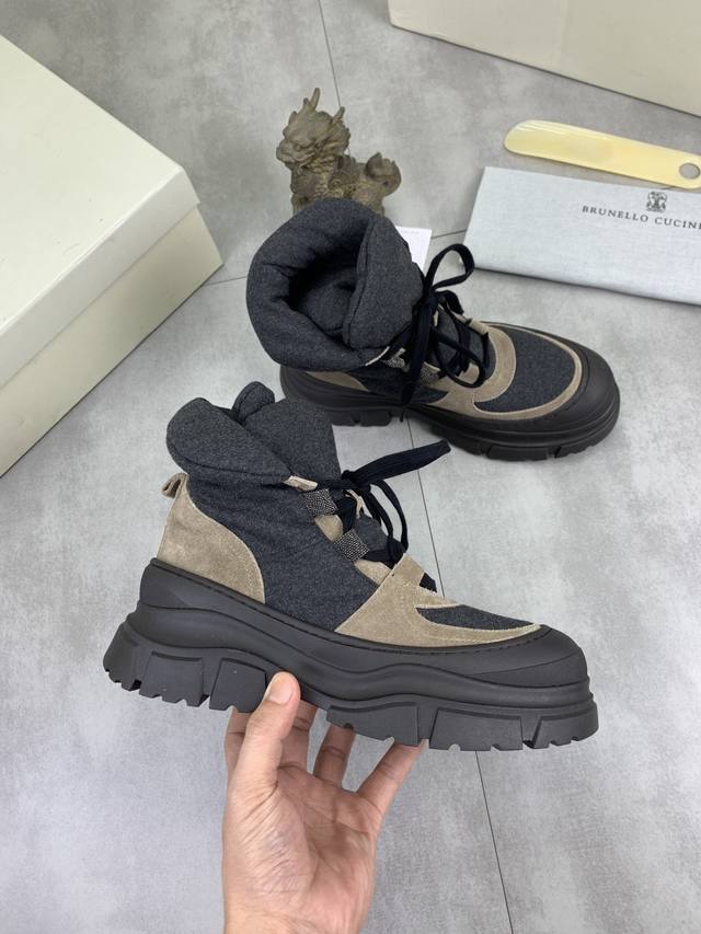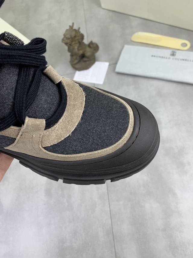 Factory Price pp High-Quality Version Brunello Cucinell* High-Top Sneakers. Classic yarn inspires the sophistication and sporty taste of this sneaker. The original cowhide upper is extremely lightweight and elastic, showing a tight look on both sides, while the toe uses a unique "micro-perforated" process for enhanced breathability. The elasticity of the knitwear ensures a better fit and greater comfort, with a striking contrast in materials showcasing sophistication. Cowhide midsole, cowhide insole for added comfort and breathability, brand logo on the heel and insole, heel pull tab, original mold, lightweight foam rubber outsole for comfortable and flexible wear. Lightweight and comfortable. Standard sizes: 35-39, 40, 41. Custom colors: 2 colors available.