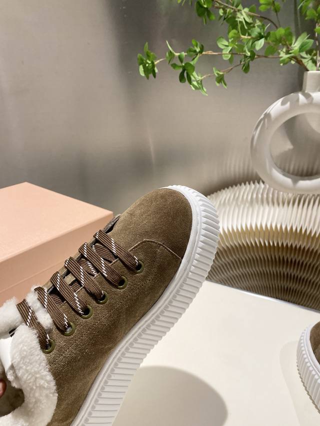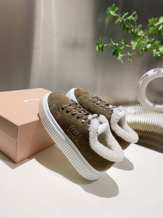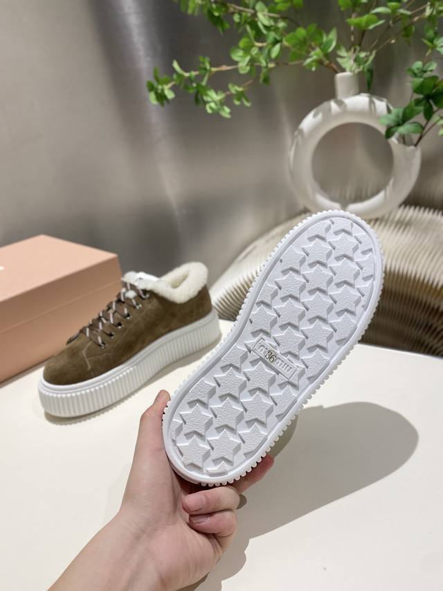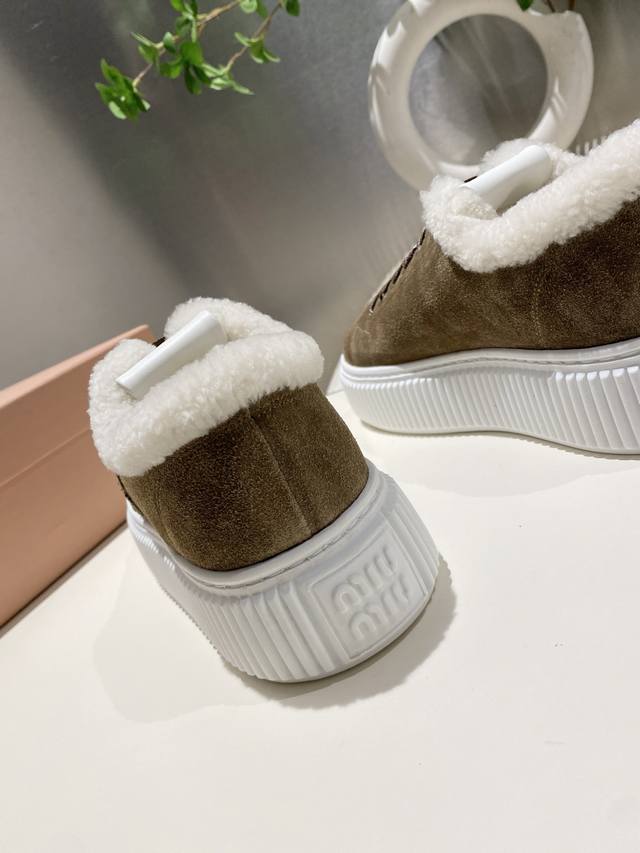 Factory Price pp Maoli 2025 Miu Miu Autumn/Winter New Thick-Soled Biscuit Shoes, Simple Design, Original Mold Sole, DDD The popularity of biscuit shoes is only increasing, not only because of their high adaptability but also because of their outstanding feel. The sole has layers of waves, just like a biscuit! The look is great and durable. Miu shoes have always been known for their girlish style, and few girls can resist Miu's sweetness! This time it's Miu's biscuit shoe series DDD Although it's a simple design, the logo on the tongue is very recognizable! It can be easily paired with long skirts, short skirts, jeans, casual wear, etc., creating a unique style DDD Upper: Cow suede lining, wool DDD Original mold sole. Sole 6cm DDD Sizes 35-41. Size 41 is custom-made and non-refundable DDD