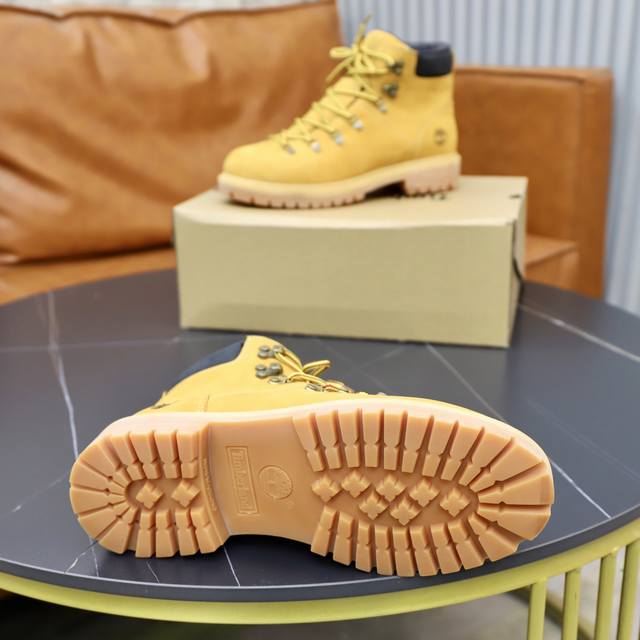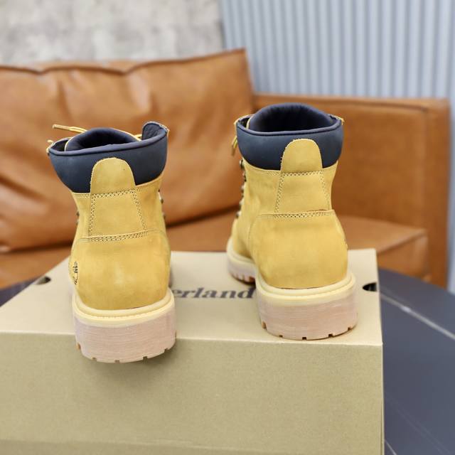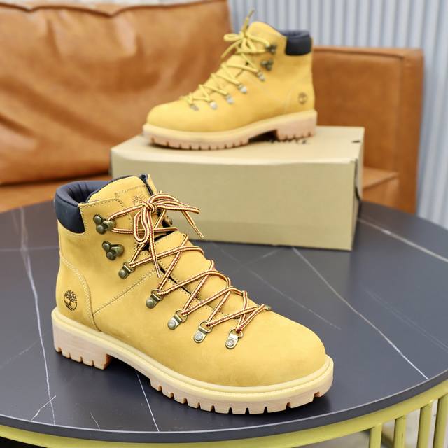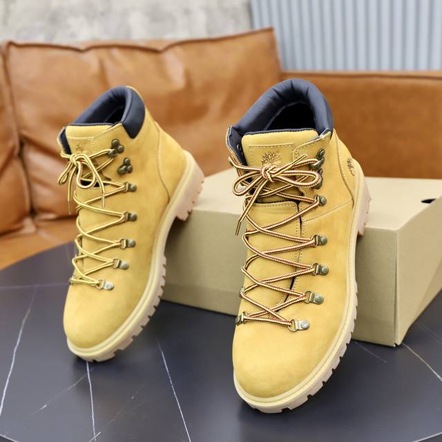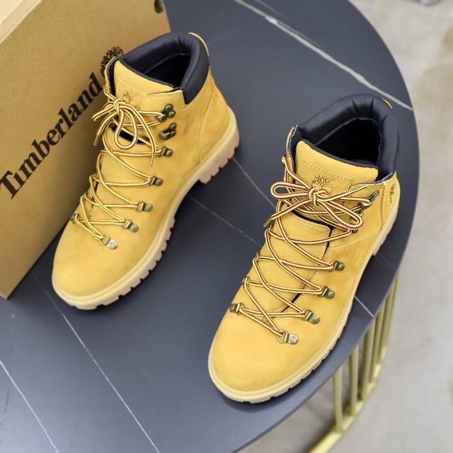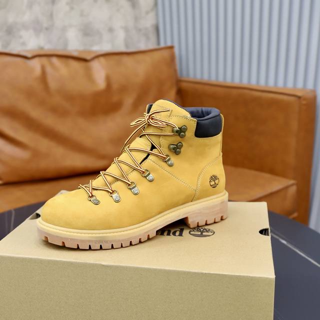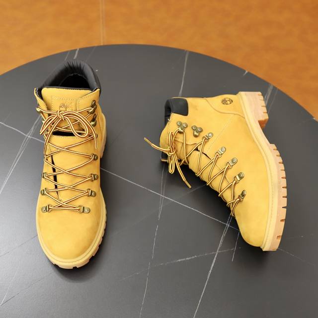 Factory Price (pp): Timberland SS25 Classic Thick-Soled Lace-Up Men's Casual High-Top Ankle Boots. These boots feature a lightweight and comfortable upper crafted from top-grain calfskin leather. The thick EVA outsole is adorned with striking embossed patterns, offering a stylish yet edgy look perfect for everyday wear. Upper: Imported top-grain cowhide Lining: Breathable inner lining Outsole: Original molded outsole Size: 38-44, 45 (custom made)
