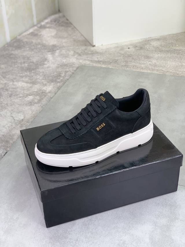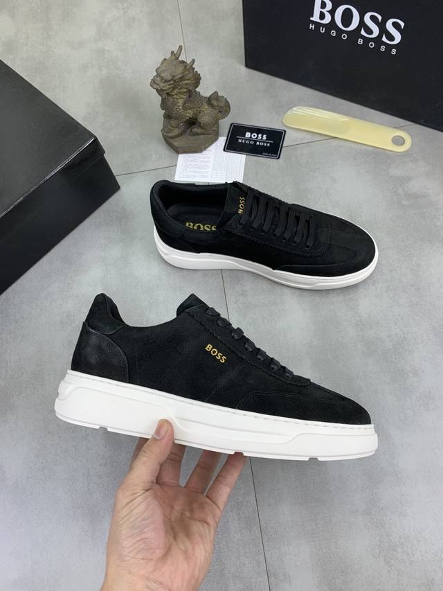 Factory Price, Real Price, Boss Original Lace-up Men's Classic High-Top Casual Shoes. This is the official flagship classic style, high quality, made by original factory masters, using imported flyknit breathable fabric, comfortable and breathable mesh lining, sheepskin insole, perfect last, generous and fashionable design, attracting many consumers. Suitable for drivers, offering the highest quality on the market. Color: Black. Sizes: 38-44, 45. Custom-made.