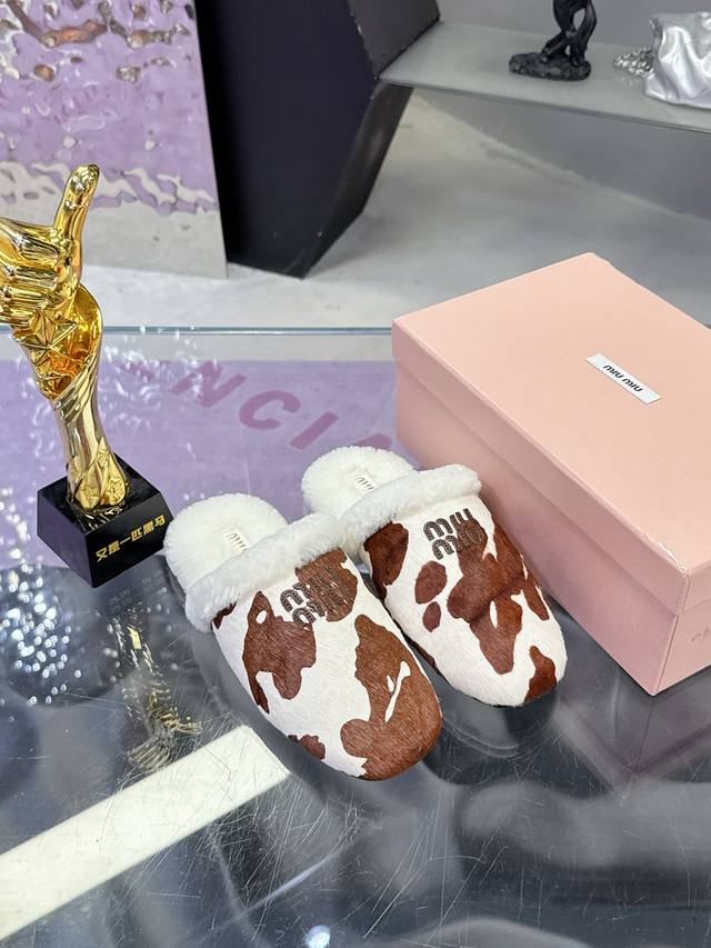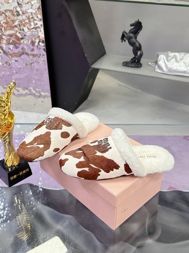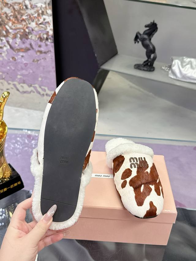 Top-grade wool lining Miumiu25 autumn and winter new imported wool slippers