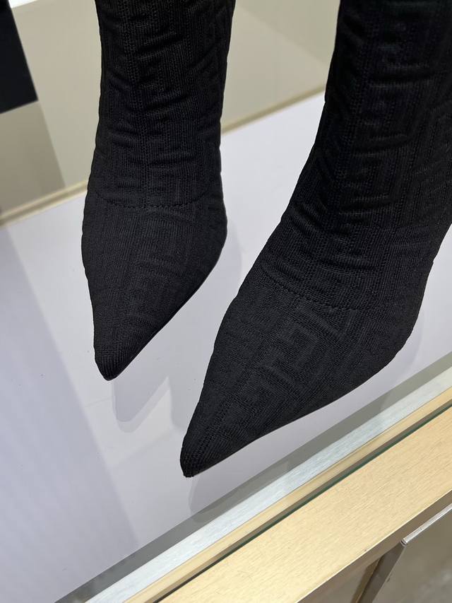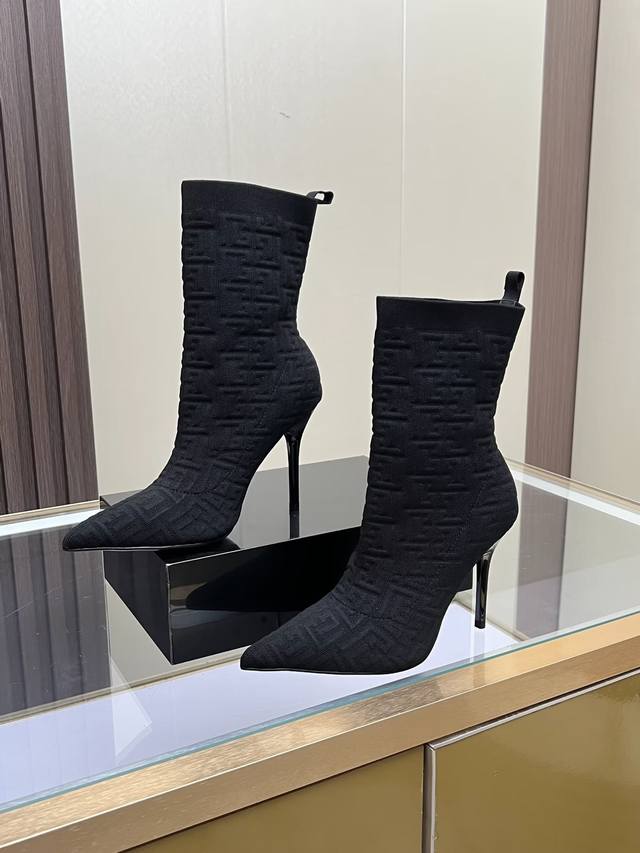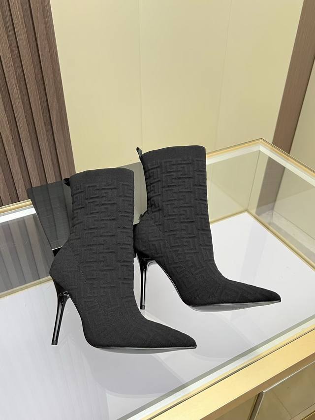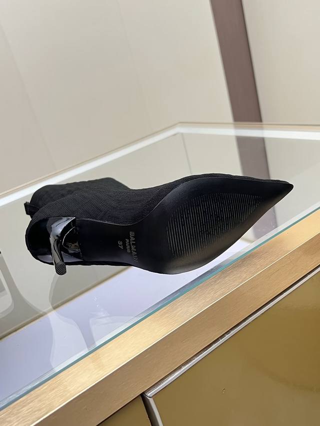 Balmain fashionable high-heeled ankle boots, fly-woven stretch fabric, inner sheepskin padding, rubber outsole, heel height 10.5cm, slender, sexy, tall and charming.