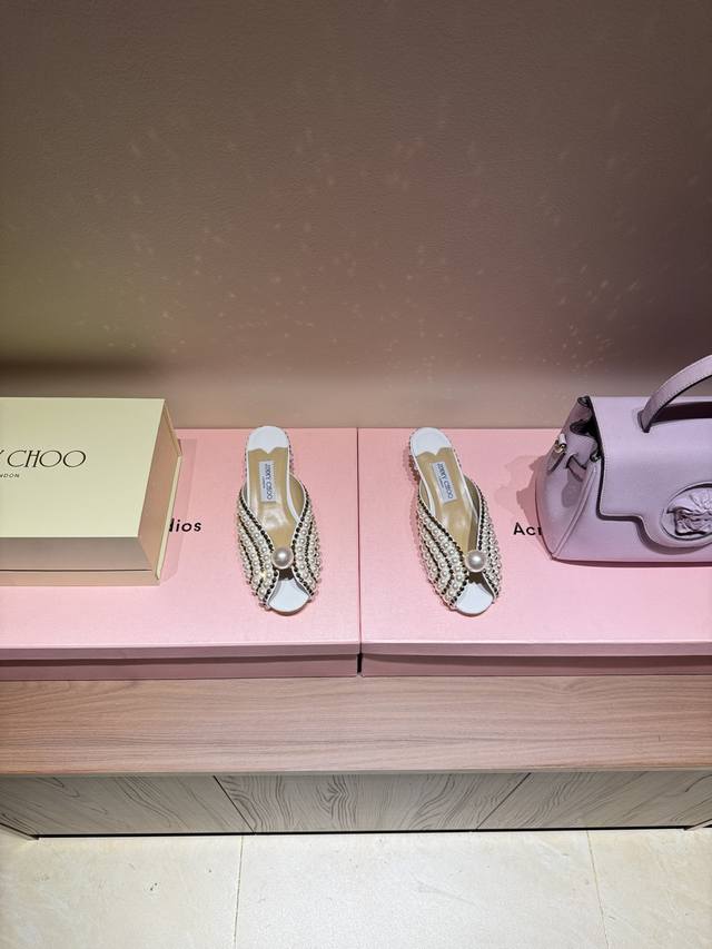 Factory price women's clothing, shoes, sportswear, original single item. Jimmy Choo handmade pearl and rhinestone series. This series is designed for extraordinary, carefree women, creating a unique overall effect. Jimmy Choo designs products that inspire women to move forward and showcase their charm. 1. Material: Imported sheepskin, handmade with rhinestones and pearls. 2. Lining: Imported Italian lambskin, super soft and delicate. 3. Outsole: Imported Italian original genuine leather outsole, heel height 6.5. 4. Sizes: 35-39, 34, 40, 41, 42. Custom sizes available.