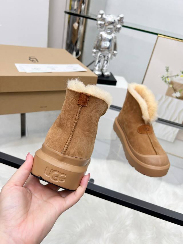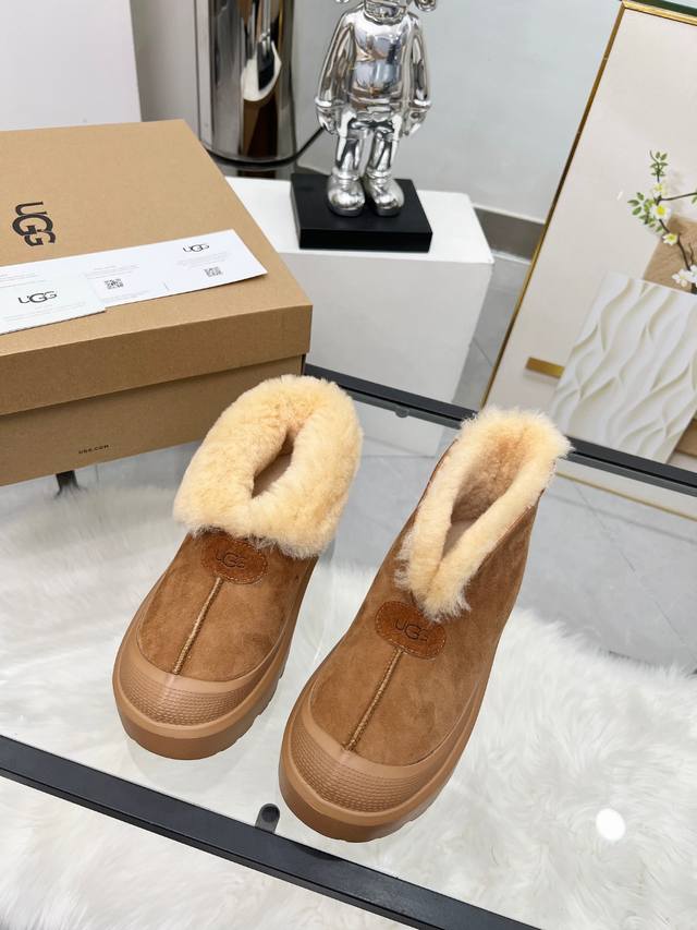 Factory Price Women's Shoes and Athletic Shoes. Two-tone leather and fur suede with a premium texture. These snow boots capture the American retro vibe.