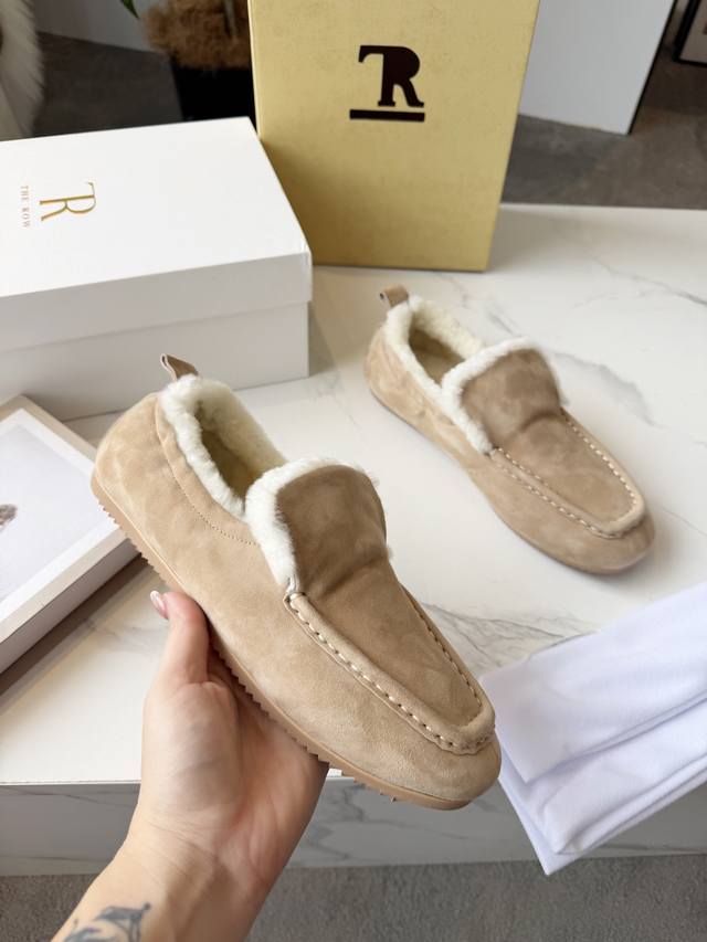 Factory price women's shoes sports original high quality Ddd The Row 2025 autumn and winter new slip-on wool loafers DDD I fell in love with these shoes at first sight. They have a retro feel and look good with any outfit! Many online celebrities are wearing them. The shoes are very soft, comfortable and won't rub your feet. Simple and versatile style ~ DDD Continuing the consistent minimalist style, the unlined structure makes the shoe body extremely lightweight and skin-friendly. The whole shoe looks simple, but the craftsmanship is actually very difficult. It uses a full leather overlay process, made by master craftsmen, and uses a lot of materials. It is comfortable, soft and skin-friendly to wear barefoot. You don't have to worry about the feel at all. It is comfortable to wear. It is a must. It is a style that you don't want to take off once you put it on. If you have high requirements for the feel of your feet, you can buy it without hesitation DDD Material: wool Ddd Insole: real wool Ddd Outsole: rubber Ddd Size: 35-40 Size 40 is custom-made and cannot be returned or exchanged Ddd Full set of original box packaging DDD