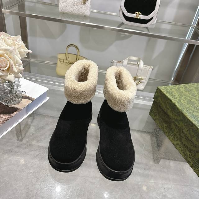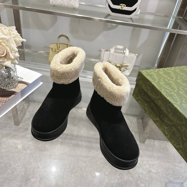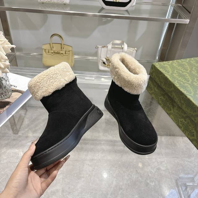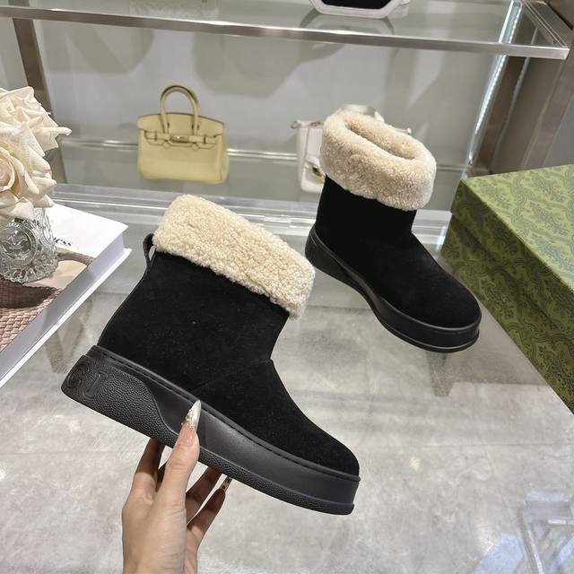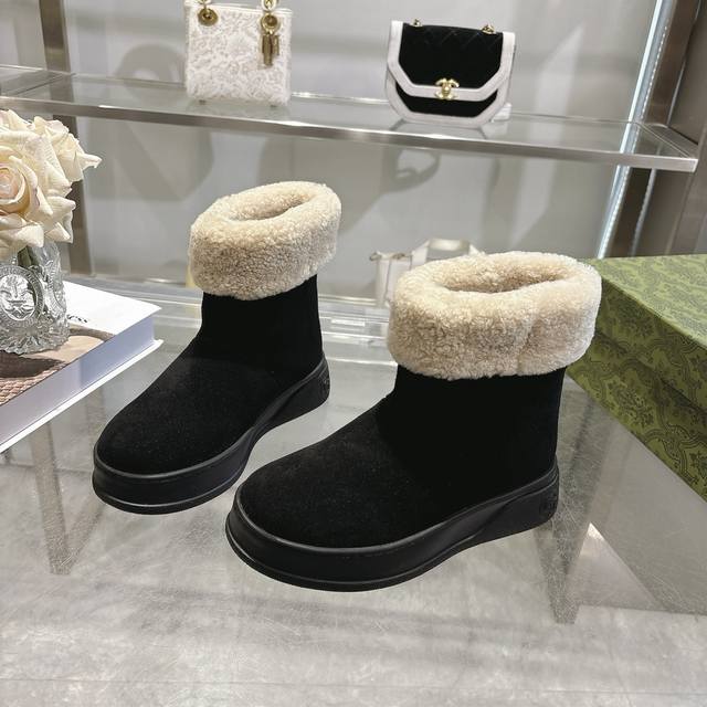 Factory price women's shoes sports original single Gg new women's merino wool lining boots Ddd These women's boots are crafted from suede, combining comfort with classic heritage. The soft merino wool lining provides a warm and luxurious wearing experience, while the iconic Gg rubber sole, inspired by the brand's classic monogram pattern, adds a bold and modern touch. DDD Suede cowhide upper Ddd Merino wool lining Ddd Gg rubber foam ultralight sole Ddd Flat sole Ddd Sizes 36-42 DDD