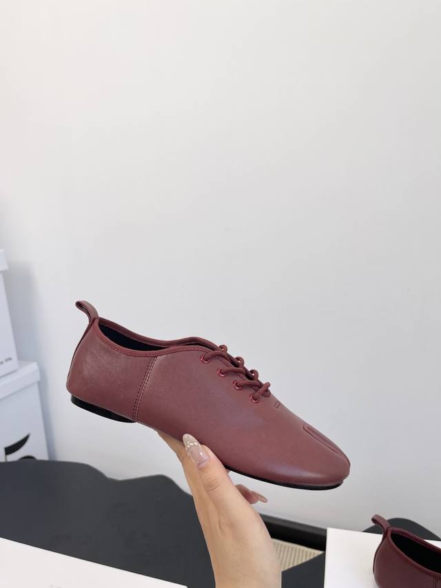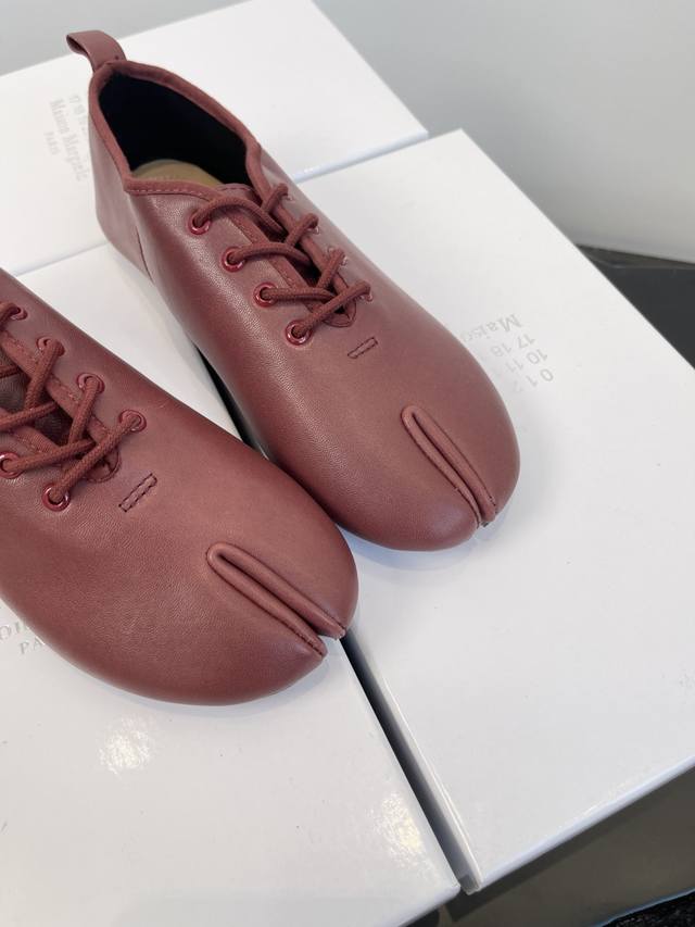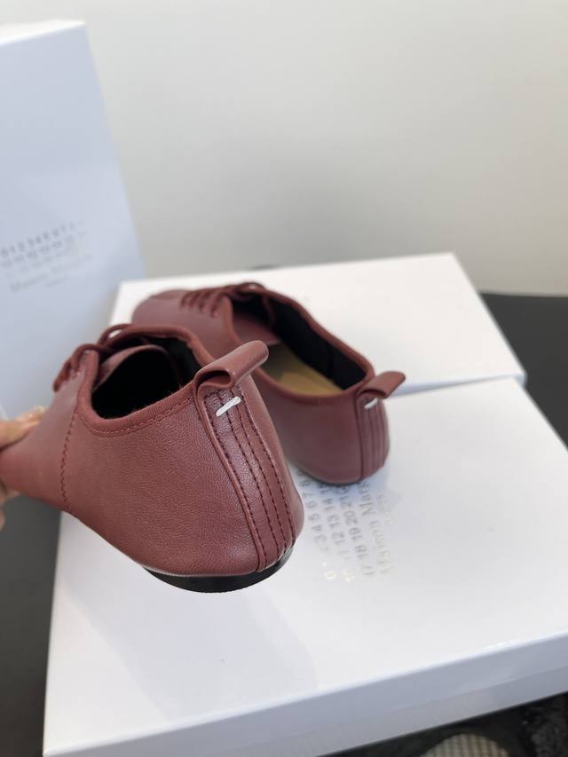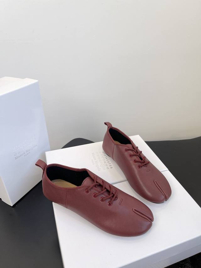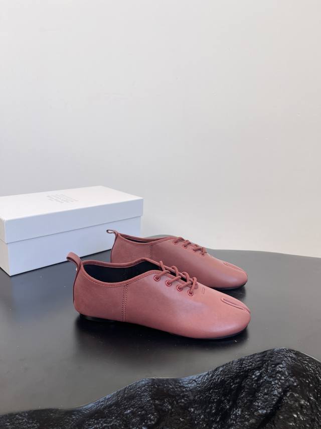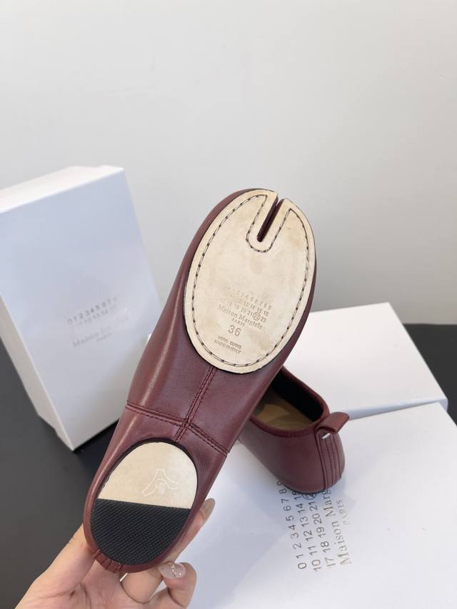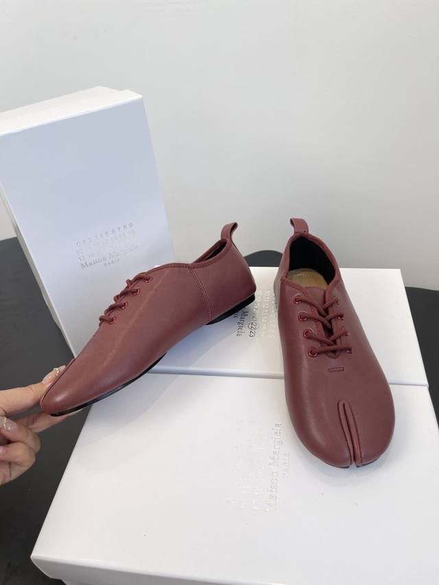 Factory price women's shoes sports original single Maison Margiela*25S early autumn new pointed toe split soft leather shoes DDD This shoe creates an intellectual detachment and understated avant-garde atmosphere. It doesn't cater to the masses, but exists only for those who understand. The use of high-quality soft leather is the key to achieving its unique beauty. This leather can conform to the shape of the wearer's foot, forming a unique personal mark. However, maintaining the three-dimensional silhouette of the pointed toe on such a soft material requires extremely high craftsmanship in terms of internal support and upper shaping. DDD The ultimate pointed toe silhouette continues the sexiness and sharpness of high fashion footwear, injecting an undeniable sense of power into the overall look. The soft and delicate lambskin or calfskin, with its warm texture and casual wrinkles, balances the aggressiveness of the pointed toe, creating a sharp yet uncomfortable, elegant and comfortable unique experience. DDD The shoe body maintains a pure single color, without any superfluous logos or decorations. This ultimate simplicity, like a canvas, maximizes the beauty of the split-toe design and the leather itself, embodying the brand's core aesthetic of anonymity. These Maison Margiela pointed-toe split-toe soft leather shoes are an elegant rebel. They rewrite the aesthetic rules of modern footwear with a split-toe design, encapsulating the most complex design philosophy in a minimalist form. More than just a footwear feature, they are an extension of the wearer's thoughts and attitude, a gateway to a more unique and profound aesthetic world. Material: Sheepskin; Lining: Sheepskin; Outsole: Italian imported genuine leather; Sizes: 35-39; Size 40 (custom orders are non-refundable).