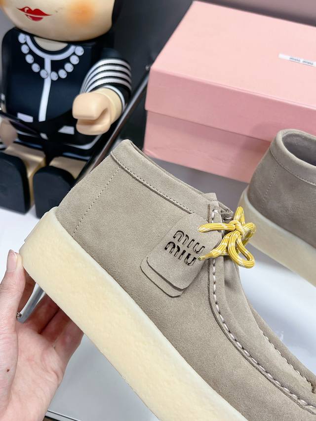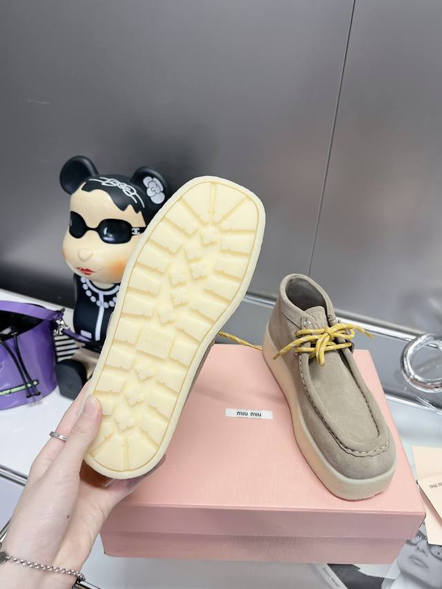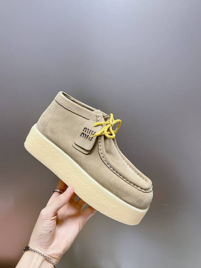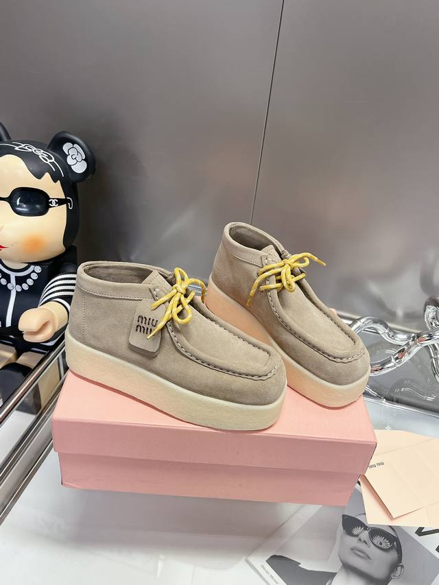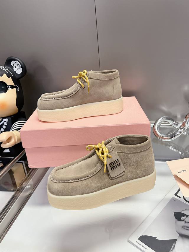 Factory Price Women's Sports Shoes Original Miu Miu Drawstring Square-Toe Platform Shoes, Miu Miu's new designer style is coming soon! Gorgeous, not only does it add height, but the soles are also comfortable. Highly recommended, these shoes are so comfortable to wear. The small Miu Miu logo tag on the laces adds a touch of style!
