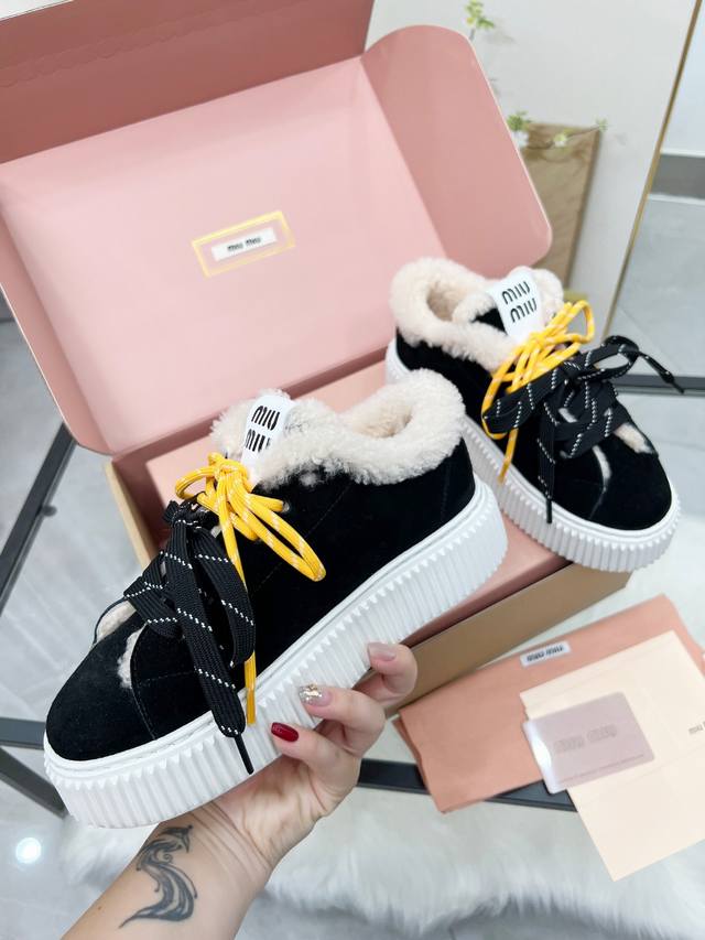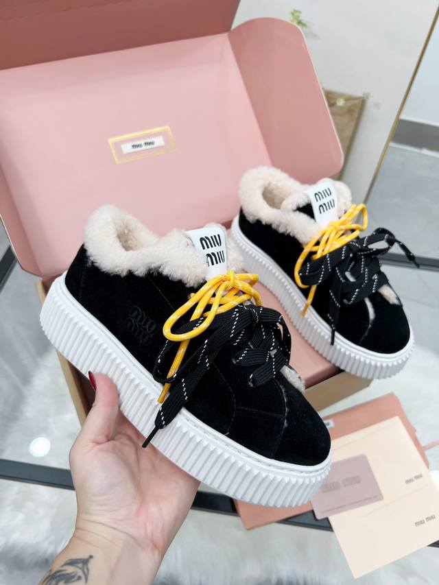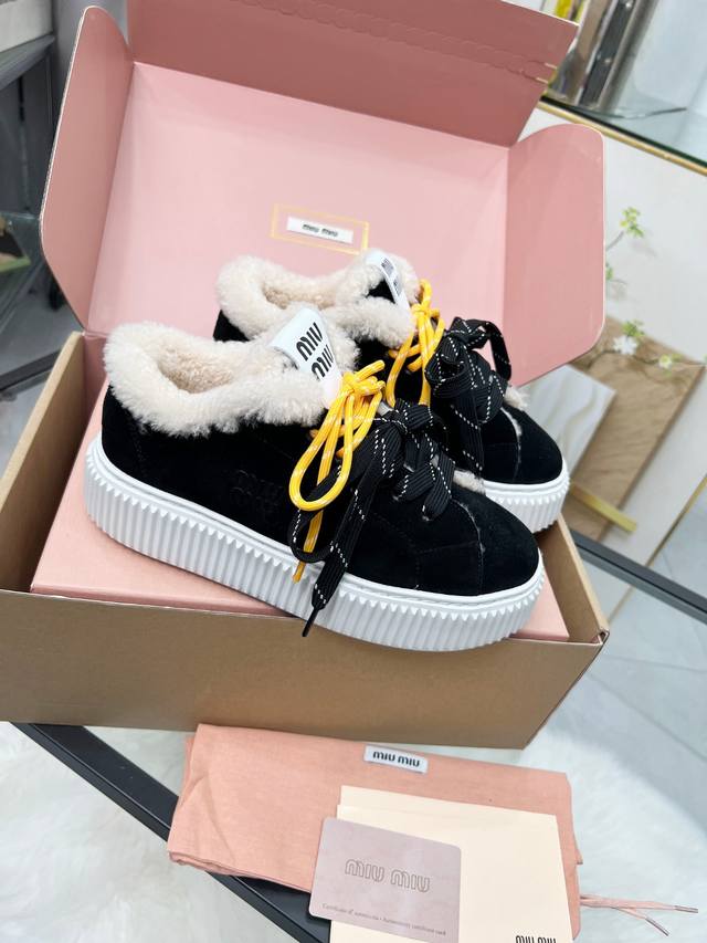 Factory price women's sports shoes, original Miu Miu, new models are on the market with wool lining.