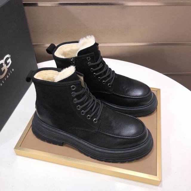 Factory wholesale Ugg genuine wool lining. Please note the original quality and thickness of the wool. Popular Martin boots from a warm, luxury Australian men's shoe brand, synchronized with the official website, Beckham men's style... Made with imported top-grain waxed cowhide, the toe is waxed and the Australian genuine wool lining is carefully stitched... Imported rubber Martin boot outsole, comfortable, soft, and wear-resistant, truly excellent quality... Exquisite workmanship, you'll love it at first sight. Sizes 39-44 DDD