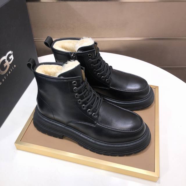 Factory wholesale Ugg genuine wool lining. Please note the original quality and thickness of the wool. Popular Martin boots from a warm and luxurious Australian men's shoe brand, synchronized with the official website, Beckham men's style... Made of imported top-layer waxed cowhide, with a waxed Australian genuine wool lining carefully stitched... Imported rubber Martin boot outsole, comfortable, soft, and wear-resistant, truly excellent quality... Exquisite workmanship, you'll love it at first sight. Sizes 39-44 DDD