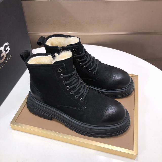 Factory wholesale Ugg genuine wool lining. Please note the original quality and thickness of the wool. Popular Martin boots from a warm, luxury Australian men's shoe brand, synchronized with the official website, Beckham men's style... Made with imported top-grain waxed cowhide, the toe is waxed and the Australian genuine wool lining is carefully stitched... Imported rubber Martin boot sole is comfortable, soft, and wear-resistant. The quality is truly excellent... Exquisite workmanship, you'll love it at first sight. Sizes 39-44 DDD