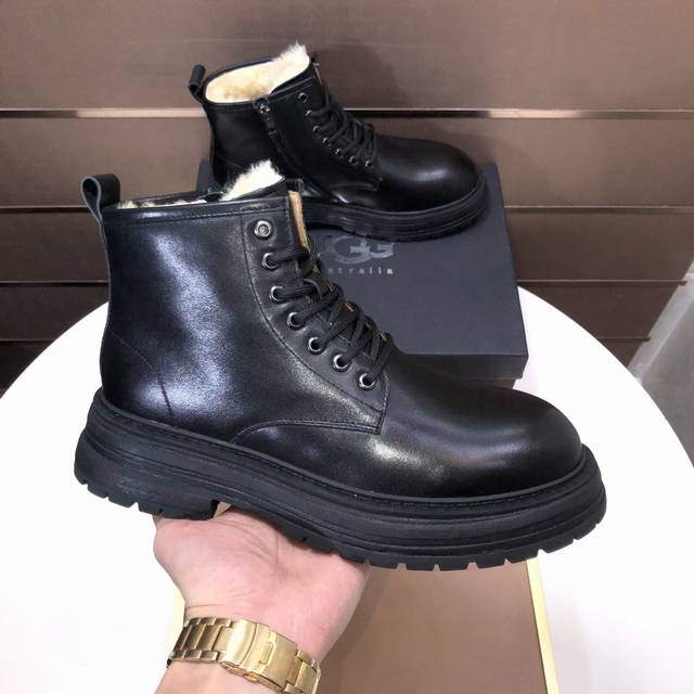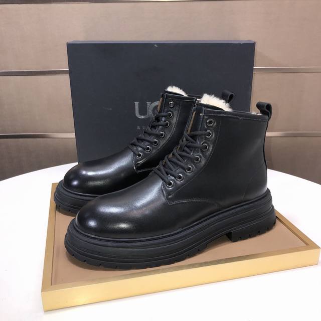Factory wholesale Ugg genuine wool lining. Please note the original quality and thickness of the wool. Popular Martin boots from a warm, luxury Australian men's shoe brand, synchronized with the official website, Beckham men's style... Made with imported top-layer waxed cowhide, the toe is waxed and the Australian genuine wool lining is carefully stitched... Imported rubber Martin boot sole is comfortable, soft, and wear-resistant. The quality is truly excellent... Exquisite workmanship, you'll love it at first sight. Sizes 39-44 DDD