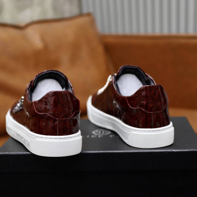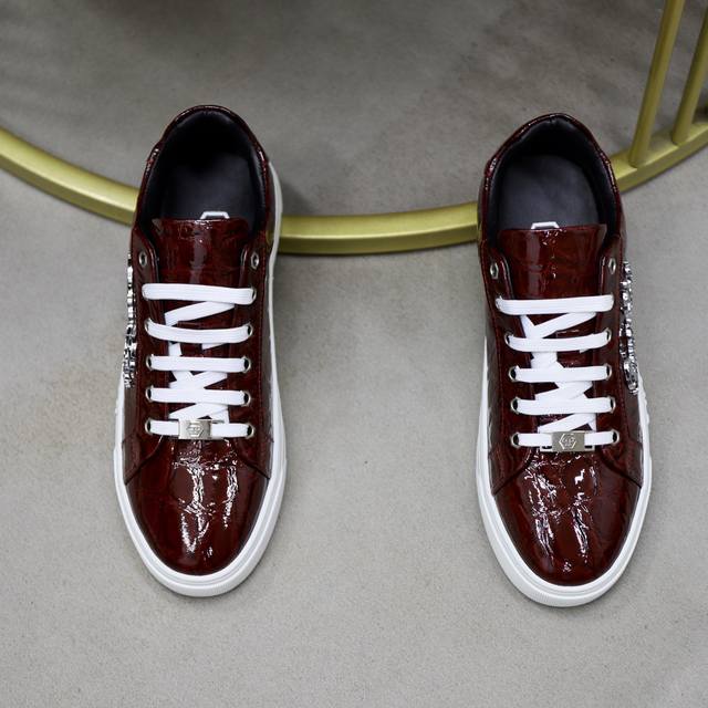 Factory-priced men's sports shoes, original Philipp Plein. Sizes: 38-44/45. Custom-made Philipp Plein men's shoes. Look no further! We're just like the ones in the store, from the leather to the details, truly exquisite! Experience the pure, handmade quality of German craftsmanship! Luxury and nobility are a must, made entirely of imported, original materials and specially crafted with hardware for a more comfortable wearing experience. The sheepskin lining and original rubber outsole are a must-have for stylish men. You deserve them!
