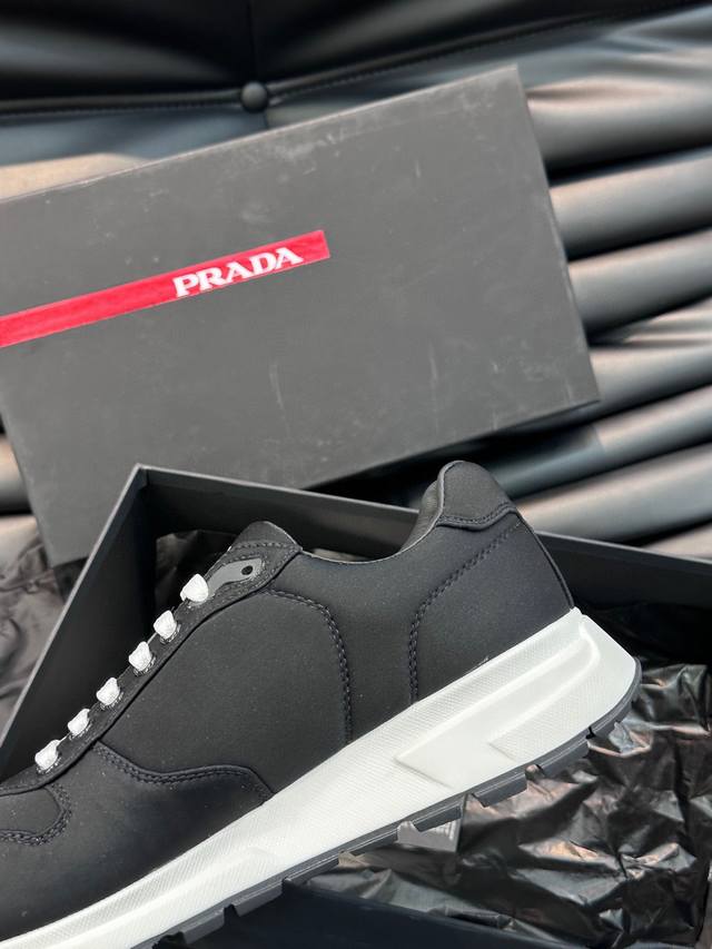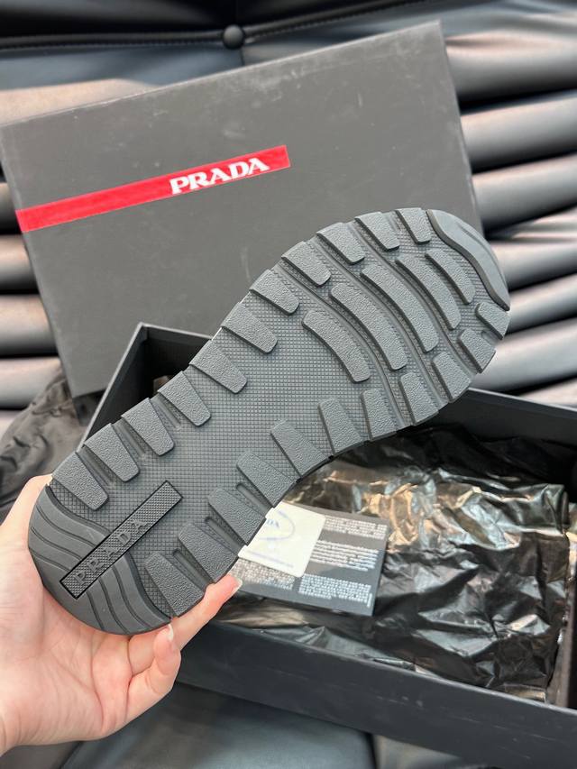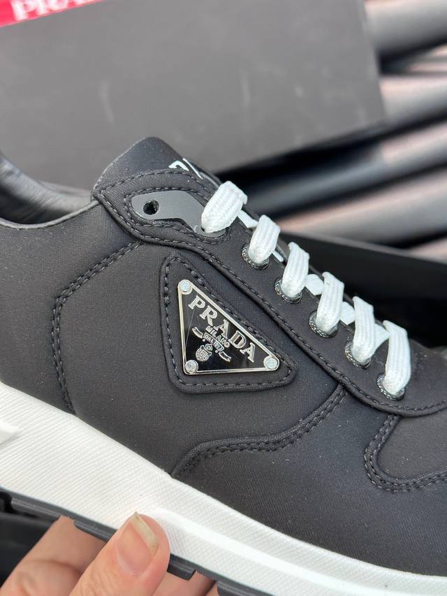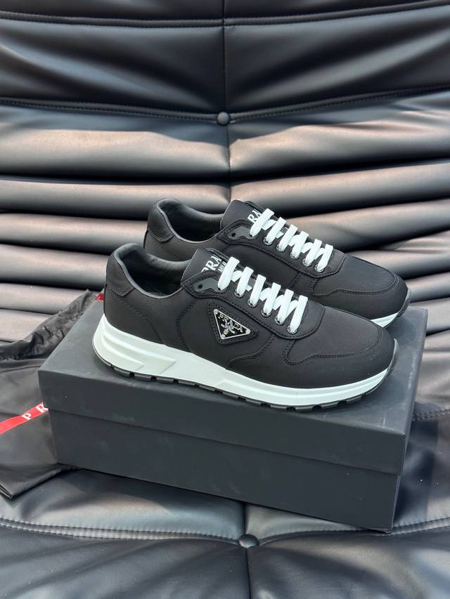 Factory-priced men's sports shoes, original Prad* Lada new men's fashion sneakers, made of imported calfskin with original waterproof fabric, top-grain sheepskin lining with classic triangle logo on the side, original rubber outsole, non-slip and wear-resistant, extremely comfortable classic style! Sizes 38-45