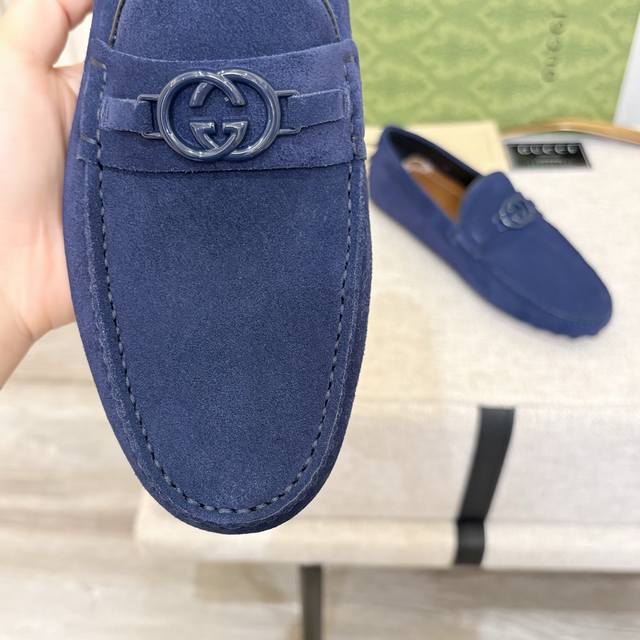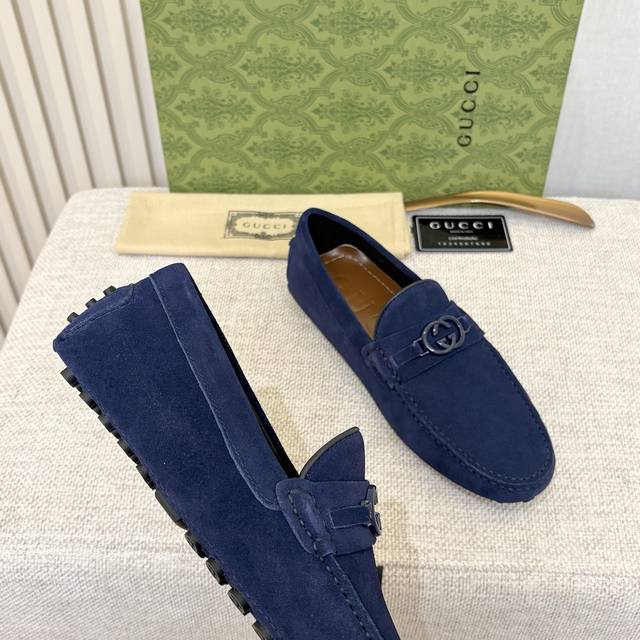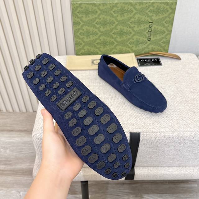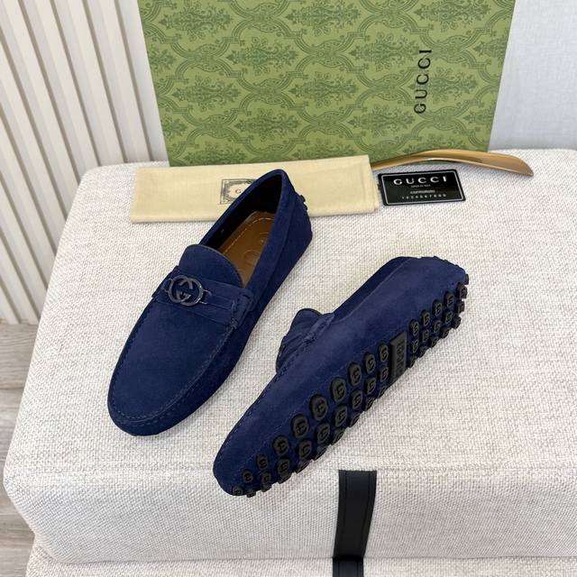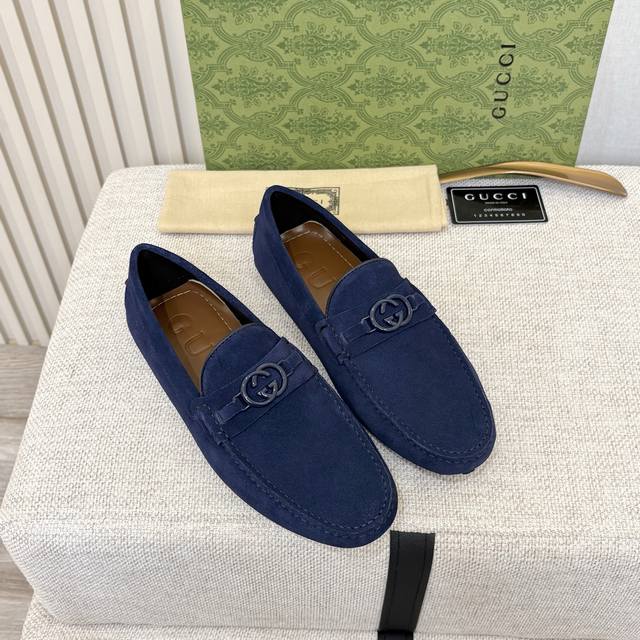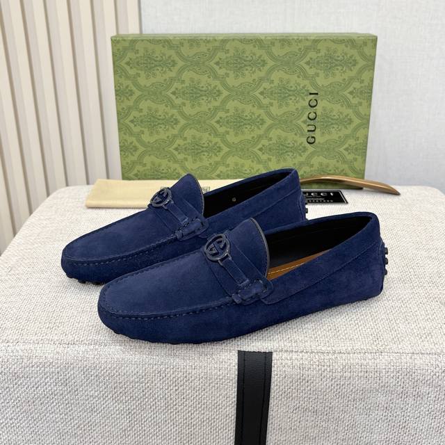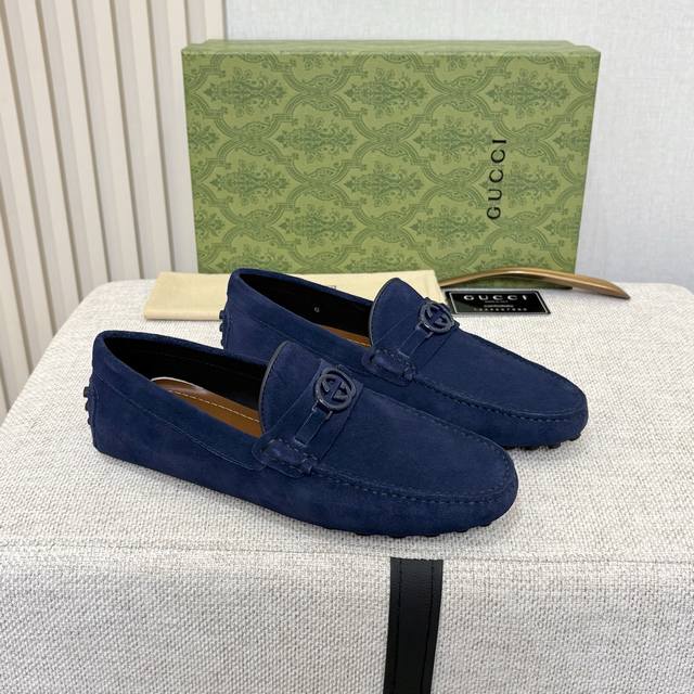 G brand men's driving shoes, 2025 official website synchronized, high-end quality, top-quality version, imported top-layer suede, black cowhide lining, insole, water-dyed brown cowhide lining. Sizes 38-45 (