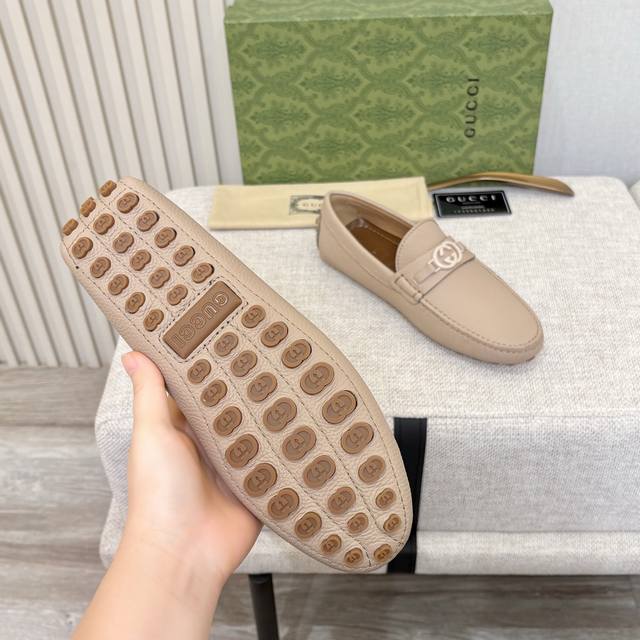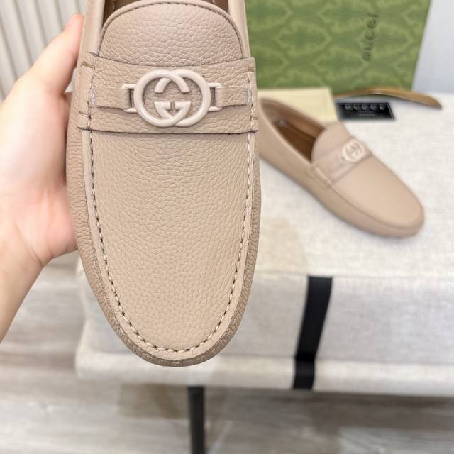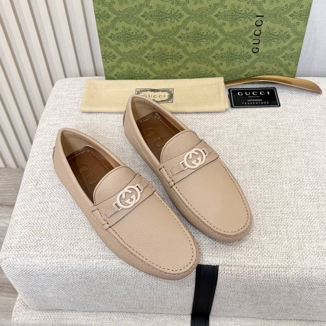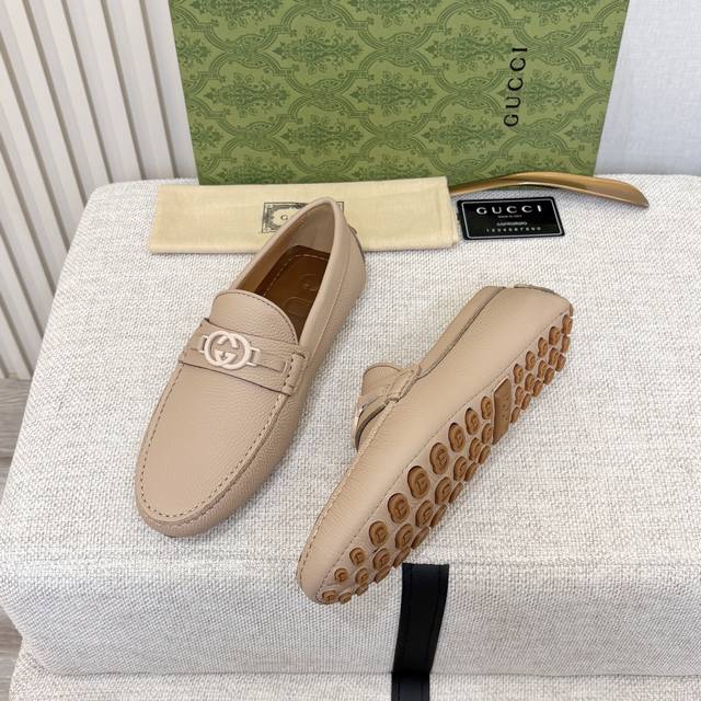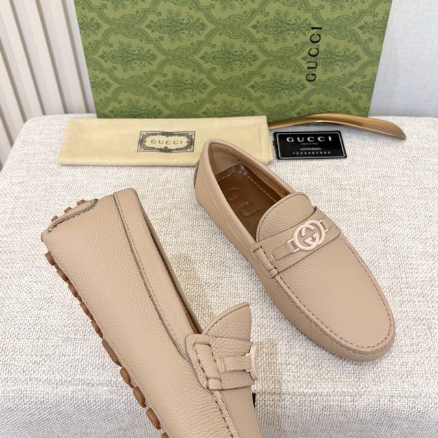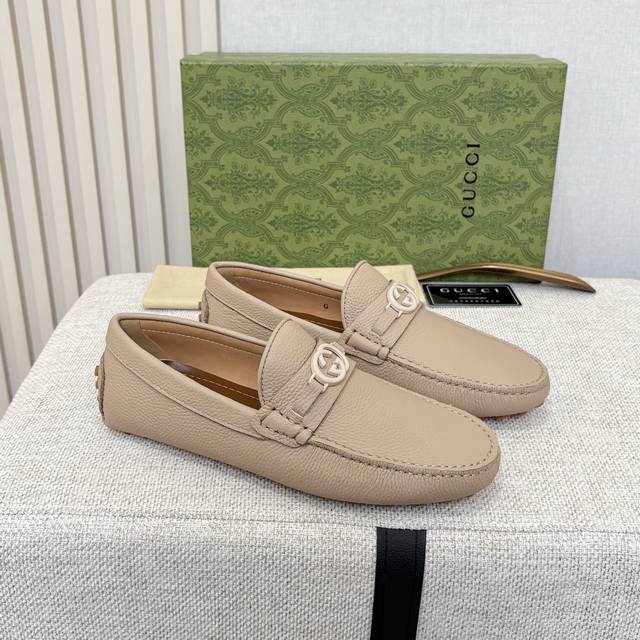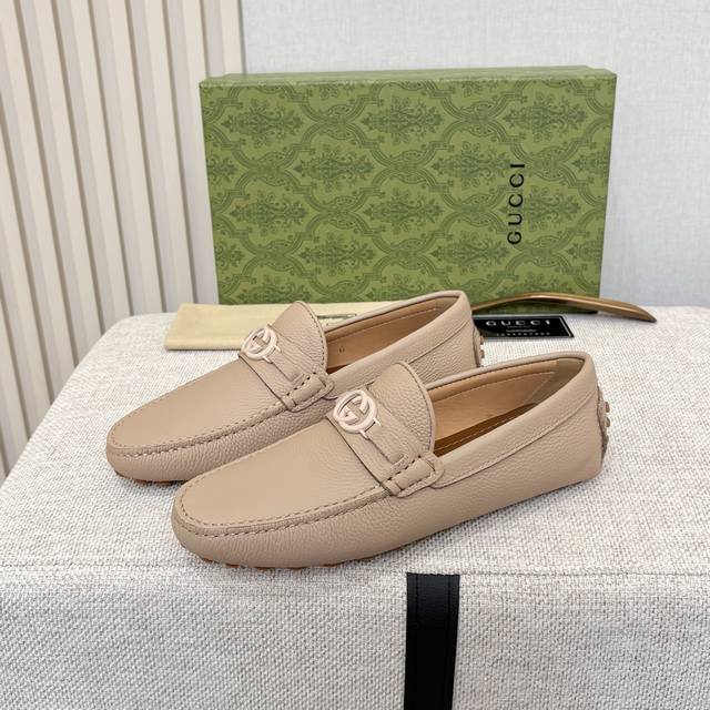 G brand men's driving shoes, 2025 official website synchronized, high-end quality, top-quality version, imported first-layer lychee texture apricot denim lining, insole, water-dyed brown denim lining. Sizes 38-45 (