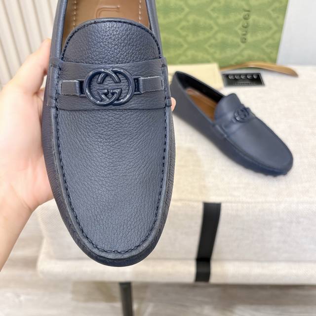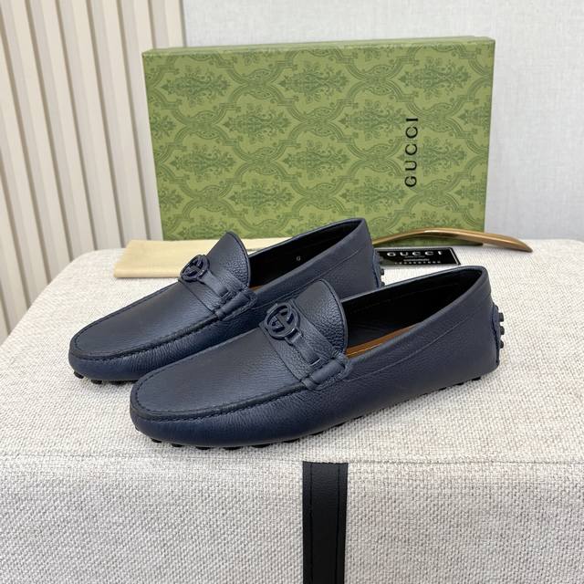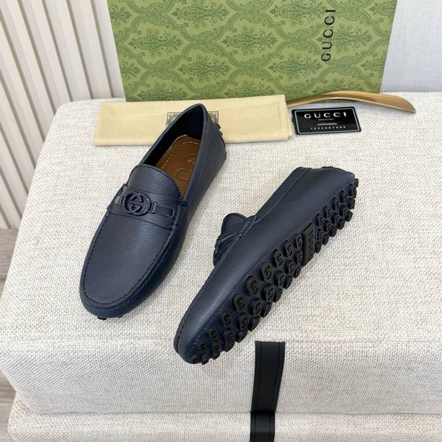 G brand men's driving shoes, 2025 official website synchronized, high-end quality, top-quality version, imported first layer lychee texture black cowhide lining, insole, water-dyed brown cowhide lining. Sizes 38-45 (