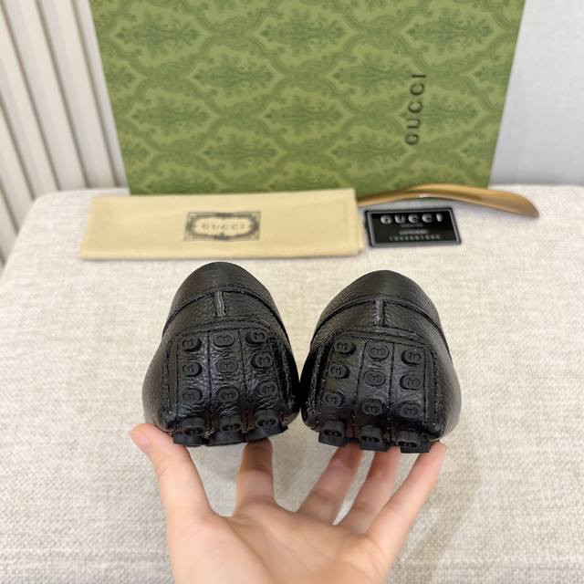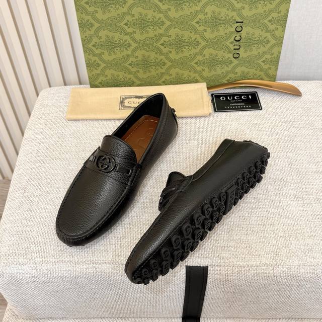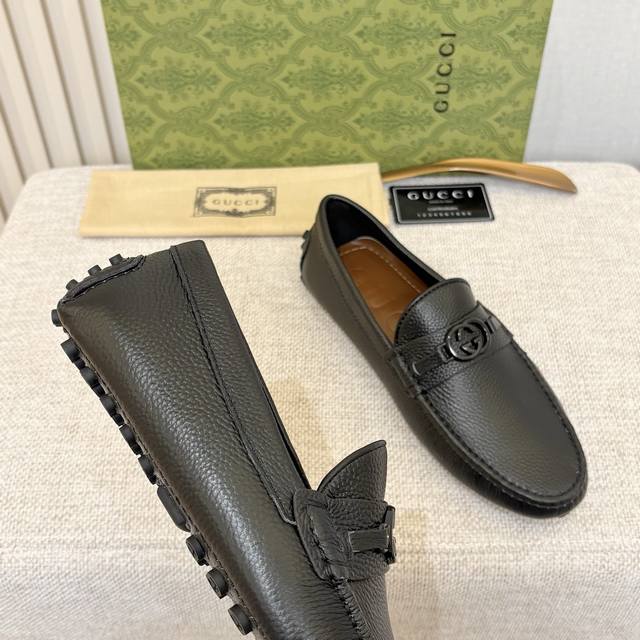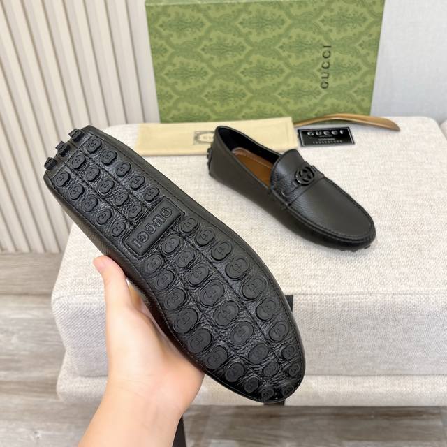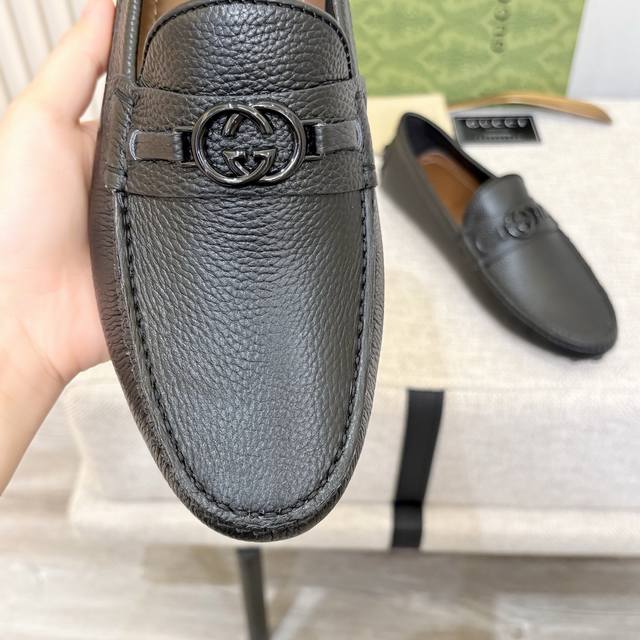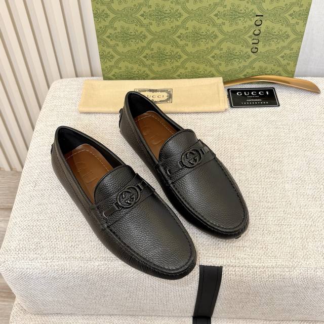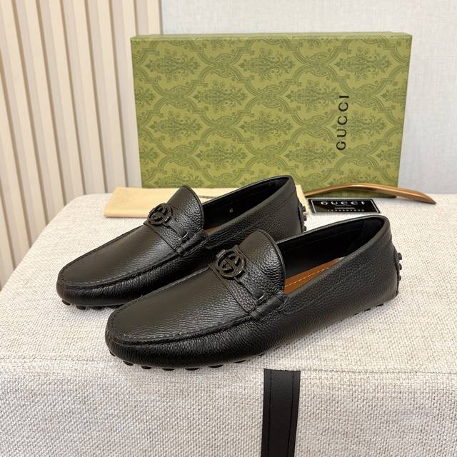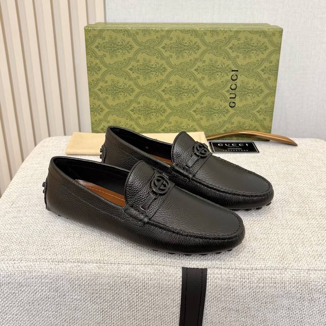 G Brand Men's Loafers 2025 Official Website Synchronized High-End Quality Top-Tier Market Version Imported First Layer Lychee Texture Black Denim Lining, Insole, Water-Dyed Brown Denim Lining. Sizes 38-45 DDD