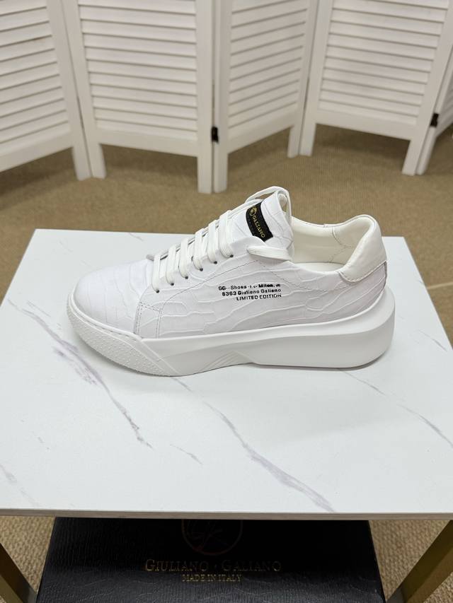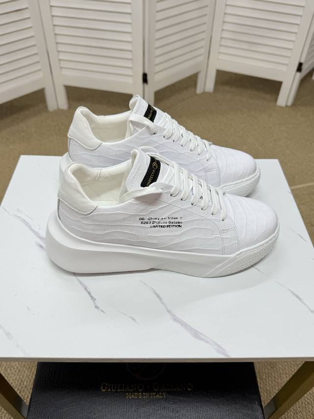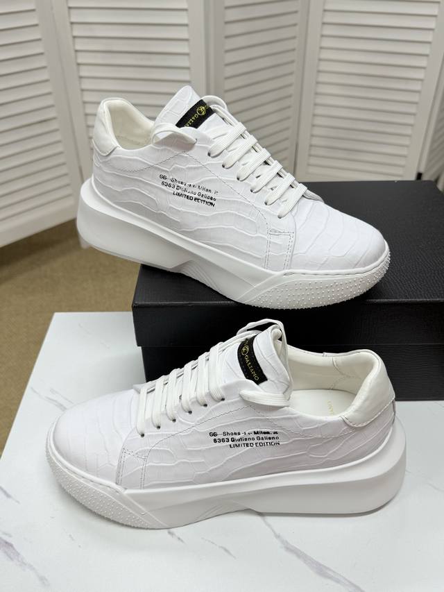 Galiano Nemesis Giuliano Galliano Nemesis. Nappa leather snakeskin platform 5.5cm low-top casual shoes for men, cowhide lining, rubber outsole. Sizes: 39-45. Size 45 is custom-made and non-refundable.
