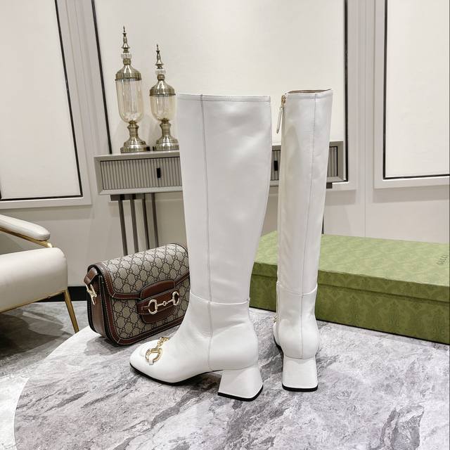 G*Cci Horsebit Square Toe Mid-Heel Boots. These ankle boots feature a cowhide upper and are embellished with the brand's signature Horsebit symbol. The sculpted square heel and square toe add a refined touch.