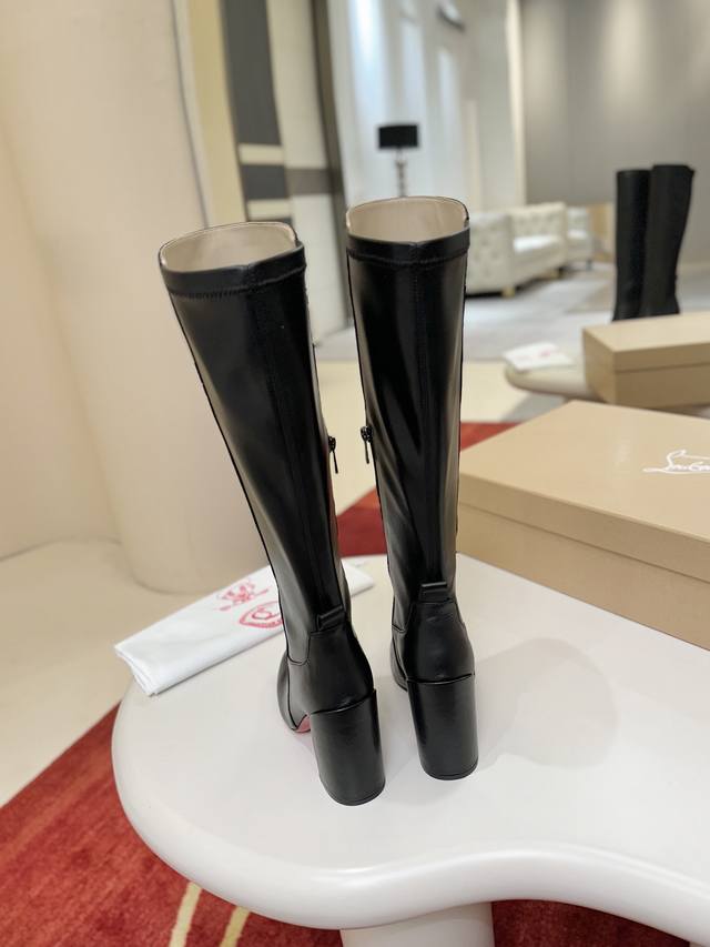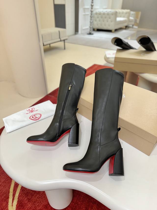 Generation*Level* DDD Jane Booty features a square, 85mm sloping heel, and this ankle boot is crafted from black calfskin. It's an urban shoe characterized by stylish lines and a padded insole. This is thanks to an innovative coating technology that ensures the durability and lasting vibrancy of our signature Louboutin red. DDD Material DDD Imported calfskin DDD Full sheepskin lining and insole, Italian genuine leather outsole DDD Sizes: 35-42 All sizes are made to order and cannot be returned or exchanged DDD Color: Black DDD Heel height: 8.5cm DDD