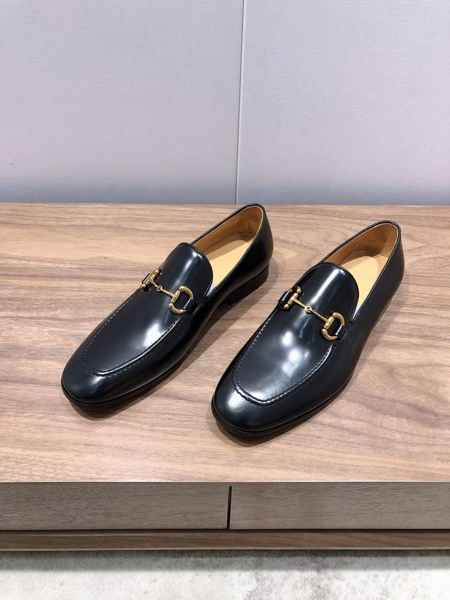 Gucci men's new horseshoe buckle leather shoes, imported cowhide upper, water-dyed cowhide lining, genuine leather outsole, standard sizes 38-44, in stock
