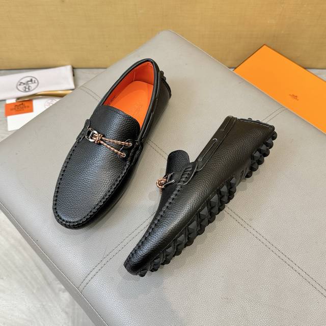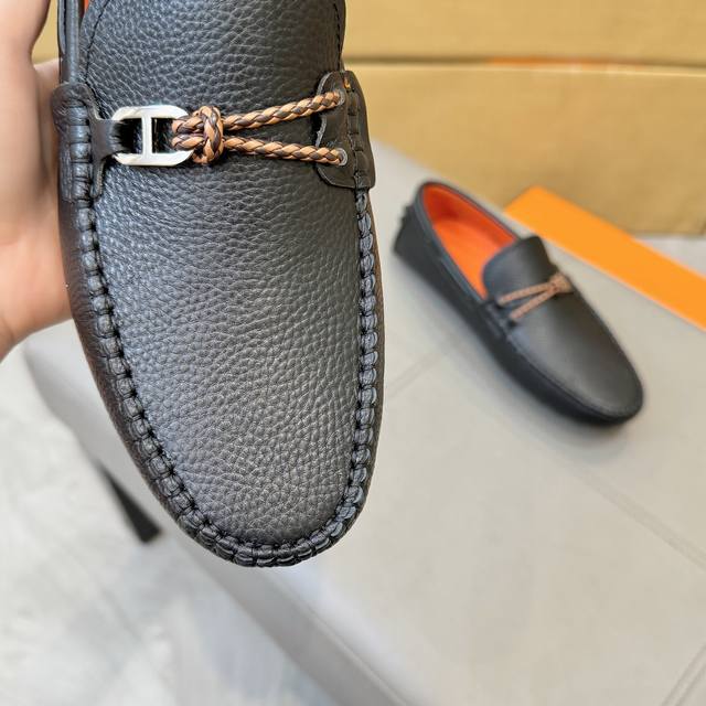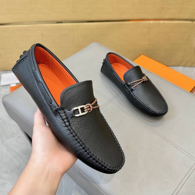 He*Mes Men's Loafers 2025 Official Website Synchronized with Top Market Version Imported Lychee Texture Orange Denim Lining Original Packaging. Sizes 38-45 DDD