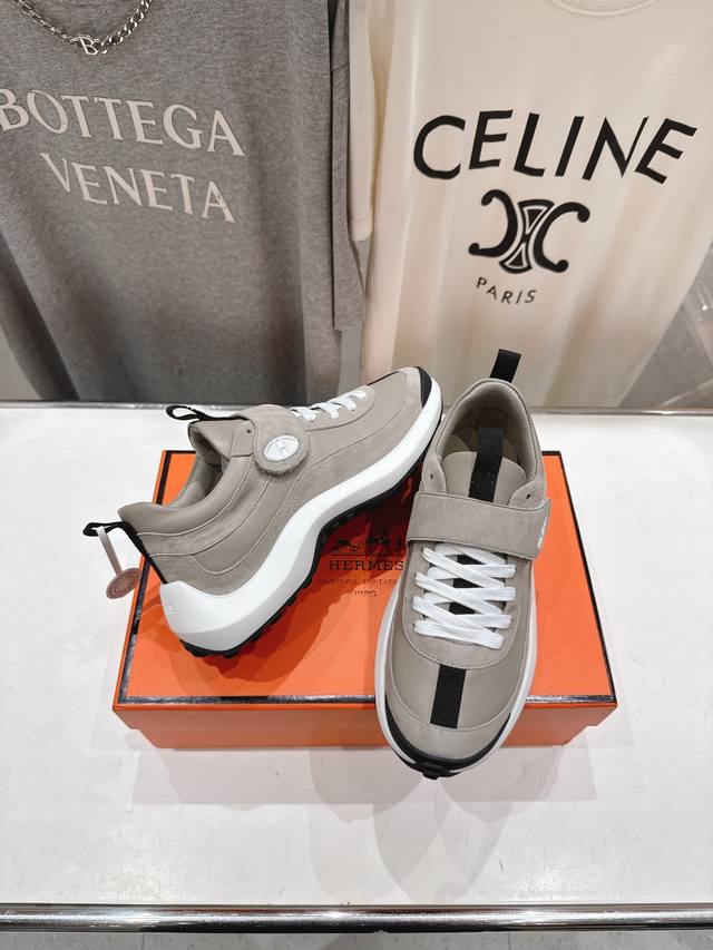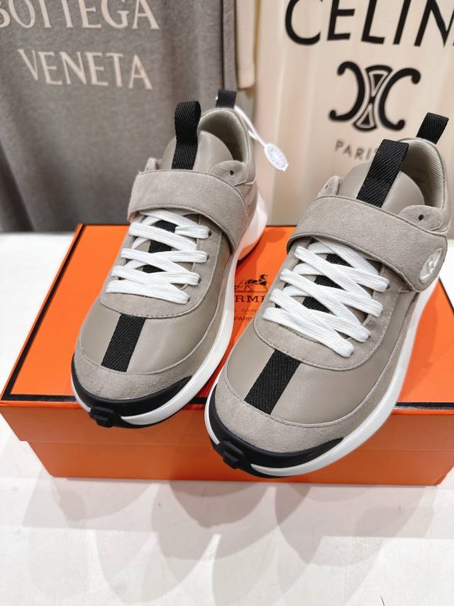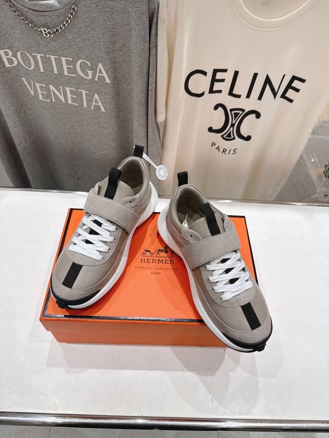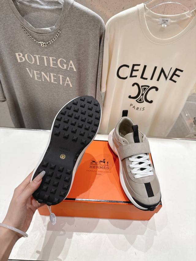 25Ss new thick-soled Velcro casual sneakers and running shoes. Classic sporty style with a British colorblock design, timeless and eye-catching! Original molded last, ultimate shape, imported calfskin for exquisite texture! Custom A-grade high-density private mold outsole, luxurious packaging!