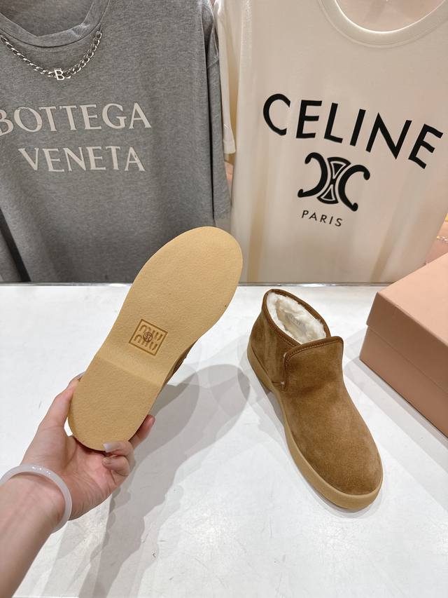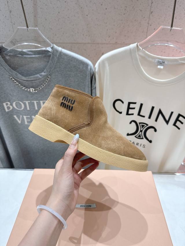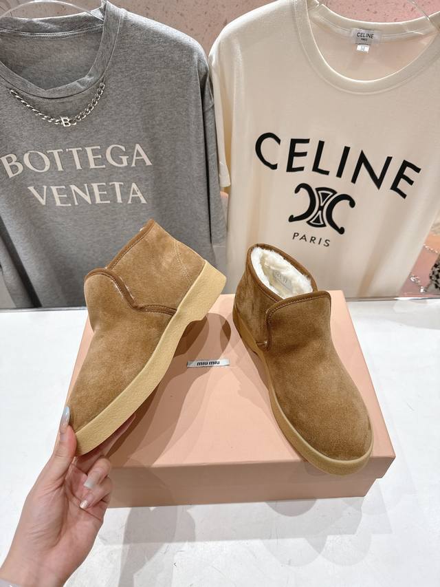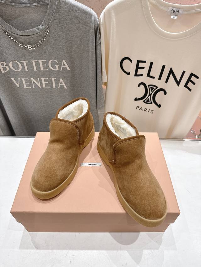 High-quality factory version DDD Miumiu F022 2025Ss Autumn/Winter runway wool ankle boots, snow boots, furry shoes, high-top cotton shoes DDD Frequently featured on the covers of major fashion magazines, loved by celebrities and Xiaohongshu bloggers, especially stunning on the feet, a must-buy, you won't regret it DDD Very comfortable and super stable on the feet, versatile and stylish, Zp developed hardware, custom colors DDD Upper: Imported high-gloss cow suede DDD Lining: Australian imported sheep curly wool DDD Sole: Zp molded rubber outsole DDD Sizes: 35-40 40. Custom orders are non-refundable DDD Full packaging DDD