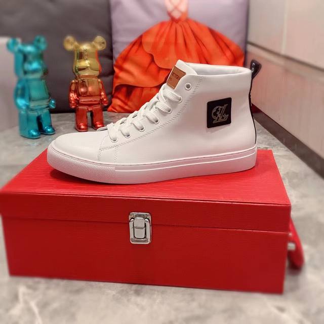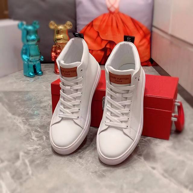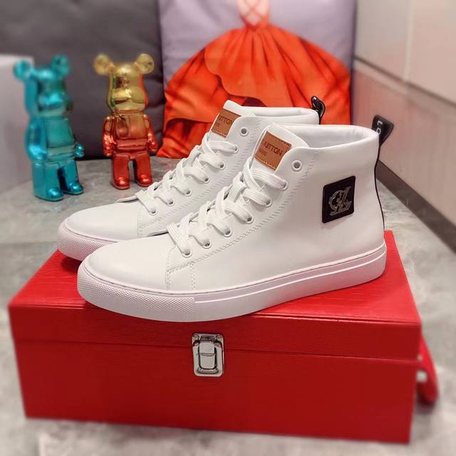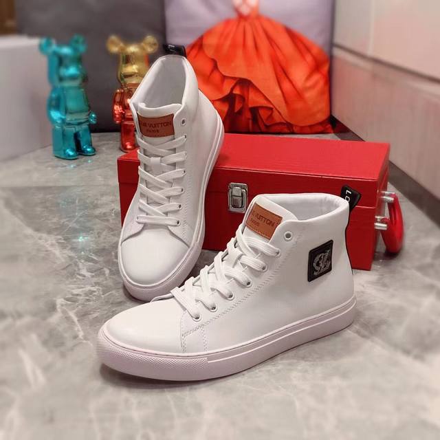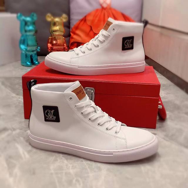 High-top: New Arrival: Factory Price L* Latest Hot-Selling Casual Shoes, Top Brand Luxury ~ Imported, Top Quality. Same product sold in department stores. The upper is made of imported breathable cowhide paired with breathable sheepskin lining with exquisite workmanship. Original design, stylish and soft rubber outsole, wear-resistant and non-slip, lightweight and comfortable on the foot. Actual product photos show even better. 2661 Guangzhou Size: 38-44. 2 colors available.