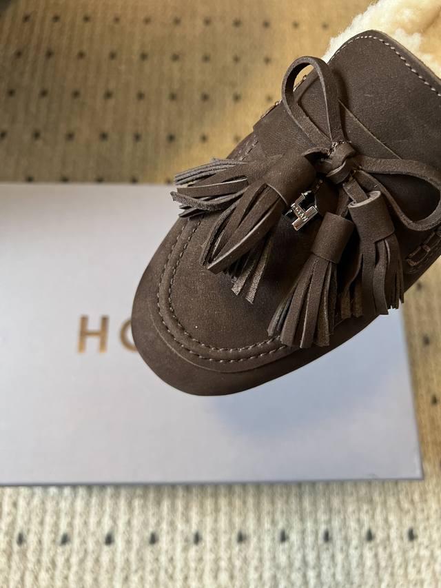Hoga* Suede Tassel and Fleece Mules