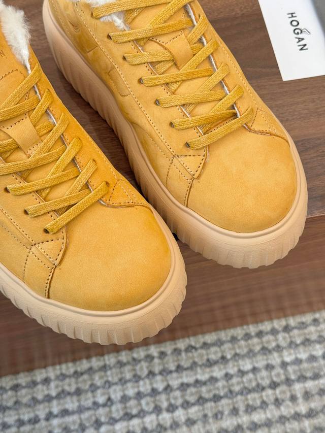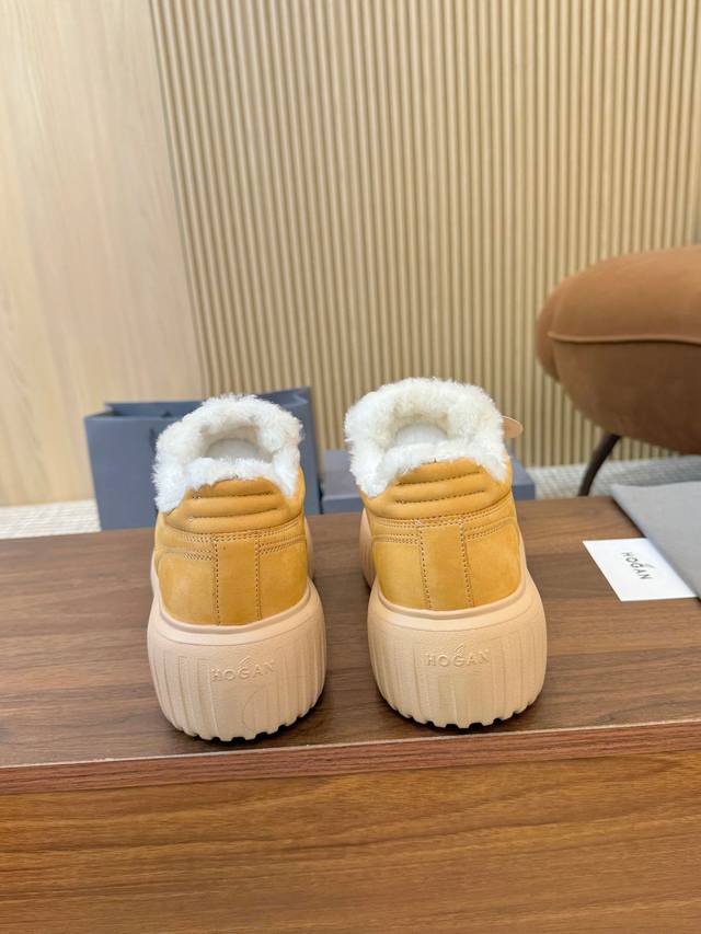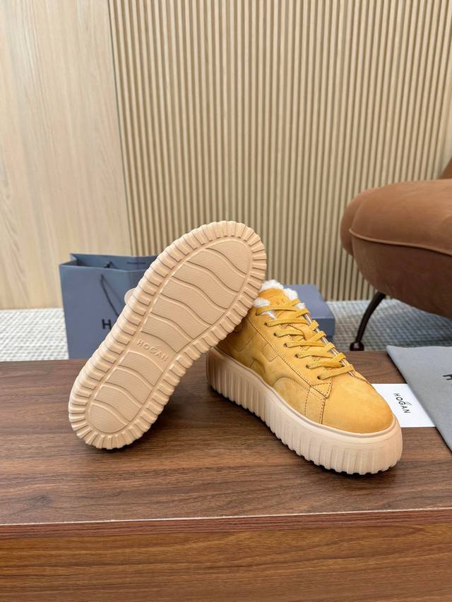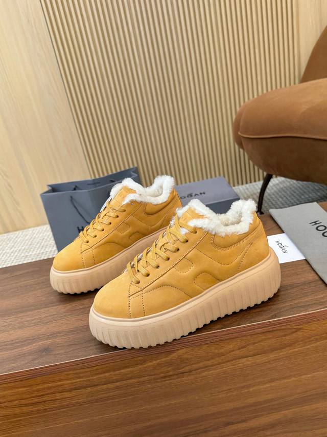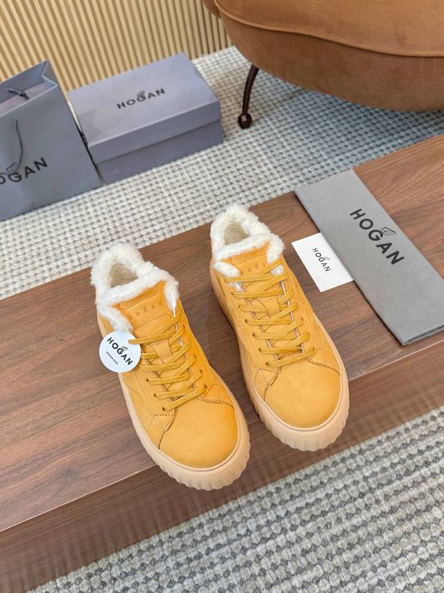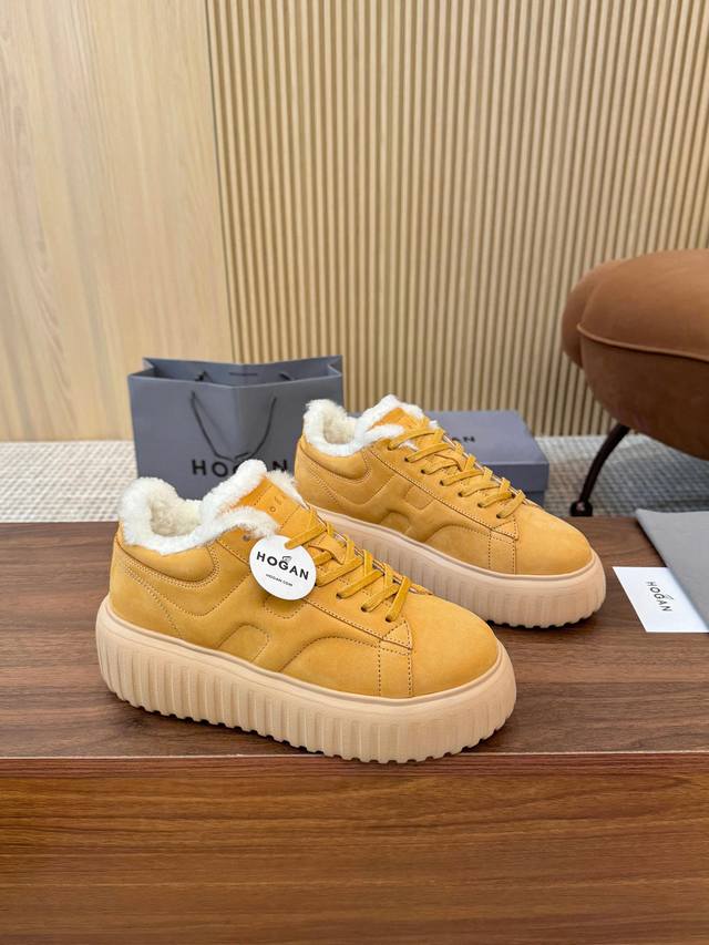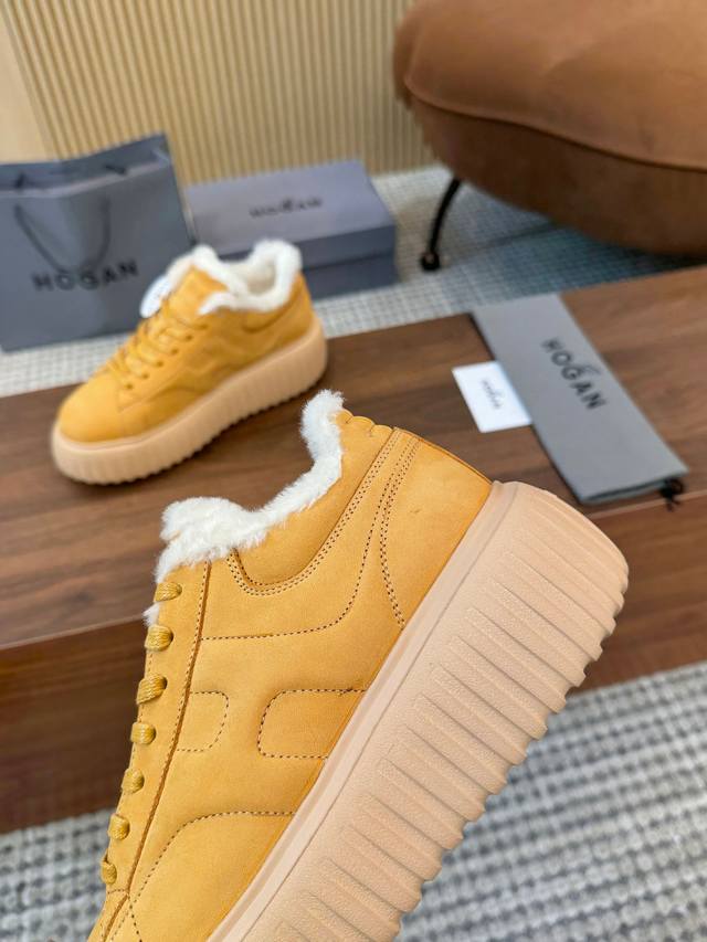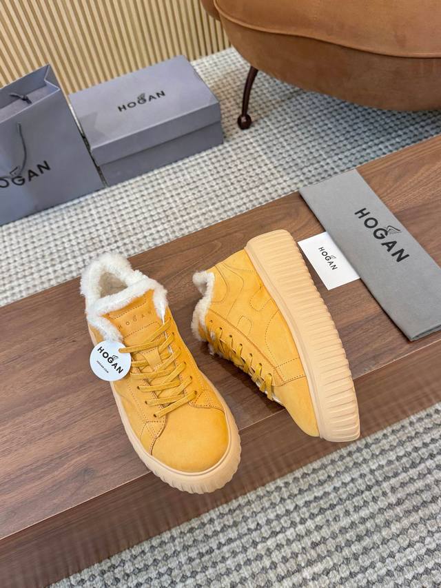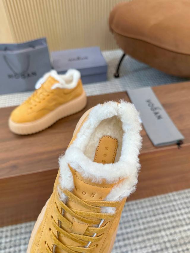 Hogan's newest style at an amazing price! Unisex, stylish round toe, genuine leather and wool lace-up design, sporty and casual, with a thick sole that instantly adds 55mm to your height. Made of suede calfskin, the smooth lines create a modern minimalist aesthetic, with an embossed logo on the tongue. The high-elastic insole keeps your feet comfortable and warm. A classic retro timeless warm shoe, a must-have for every autumn and winter. You deserve it! Unisex, sizes 36-44, 35-45 (custom orders are non-refundable/non-exchangeable).