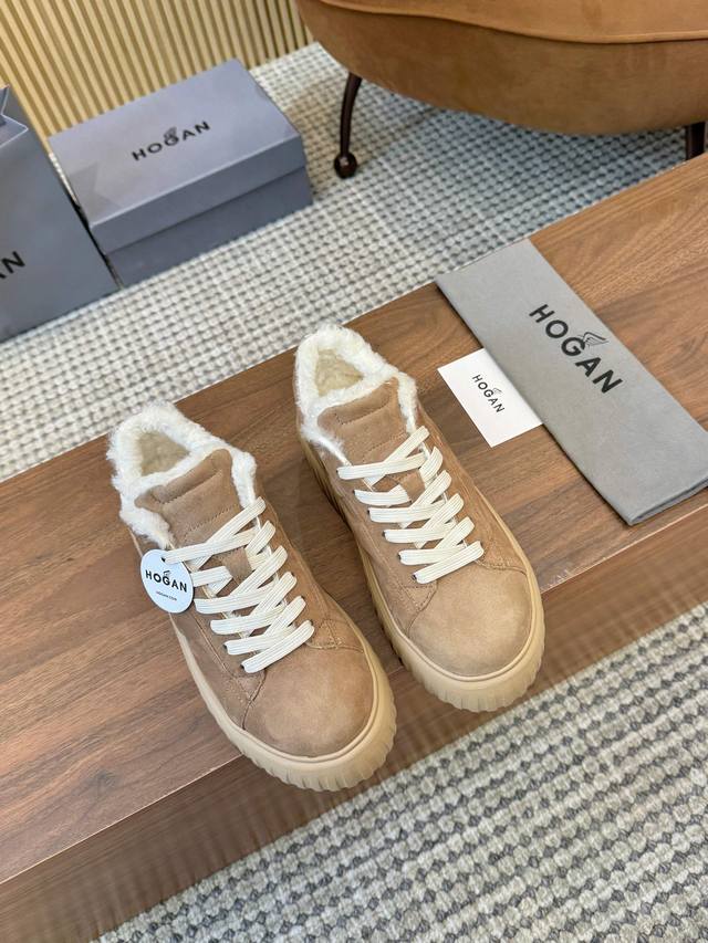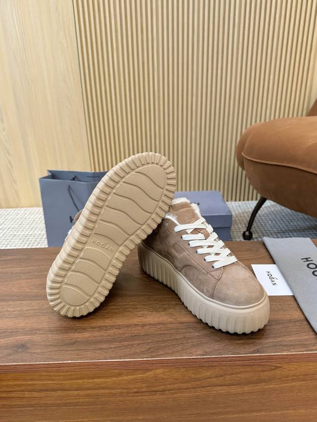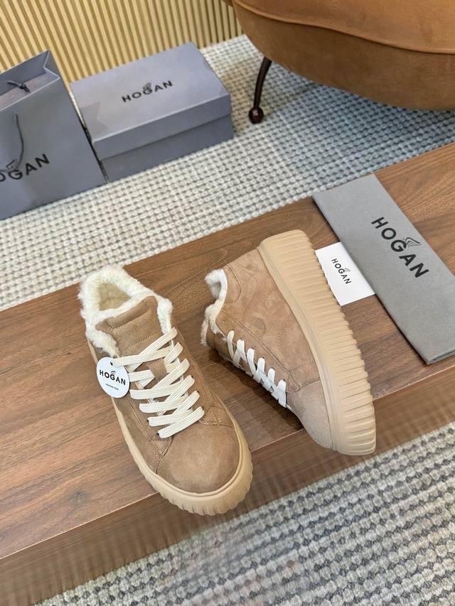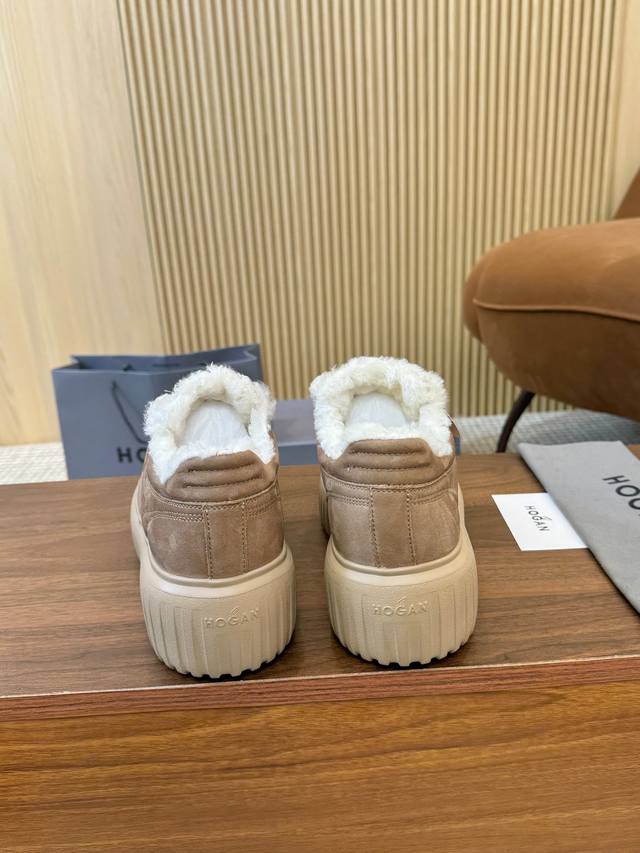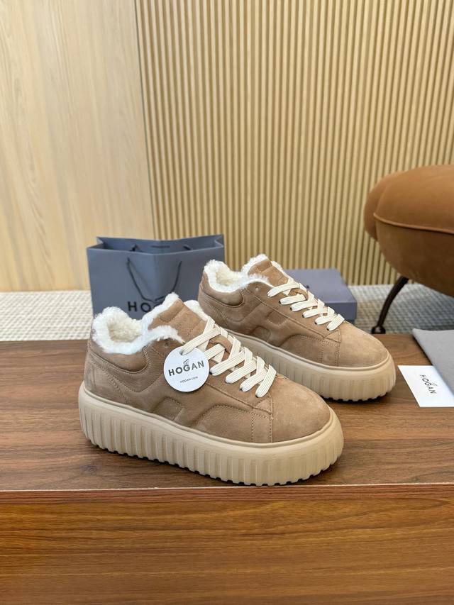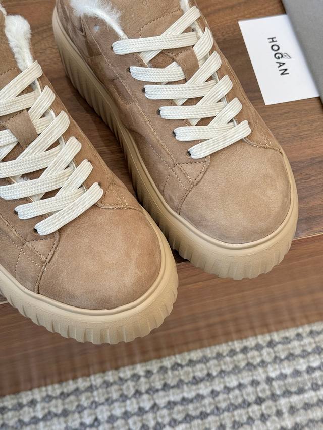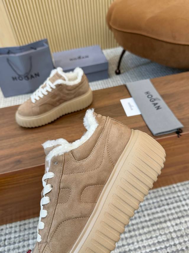Hogan's newest style at an amazing price! Unisex, stylish round toe, genuine leather and wool lace-up design, sporty and casual, with a thick sole that instantly adds 55mm to your height. Made of suede calfskin, the smooth lines create a modern minimalist aesthetic, with an embossed logo on the tongue. The high-elastic insole keeps your feet comfortable and warm. A classic retro timeless warm shoe, a must-have for every autumn and winter. You deserve it! Unisex, sizes 36-44, 35-45 (custom orders are non-refundable/non-exchangeable).