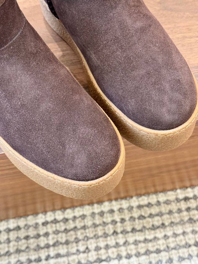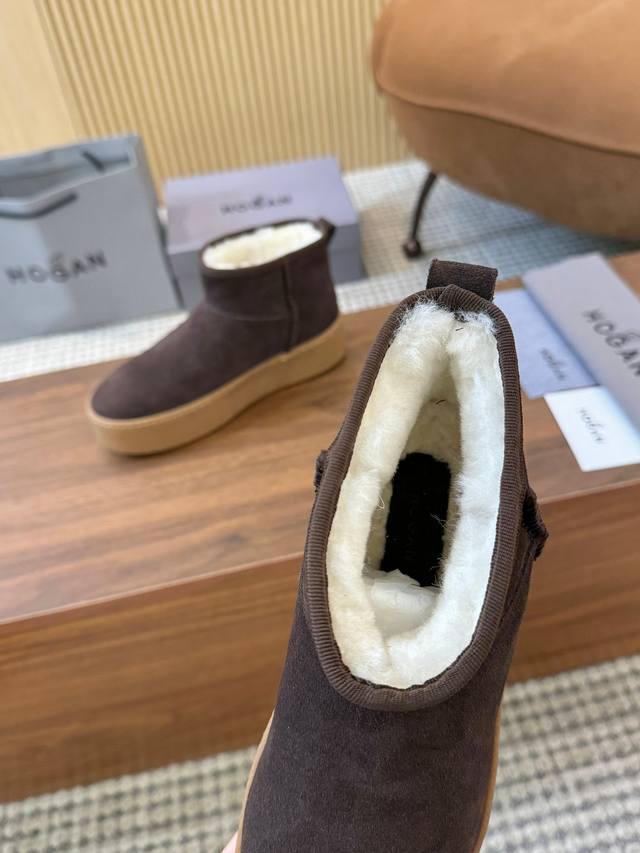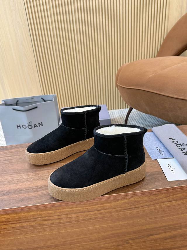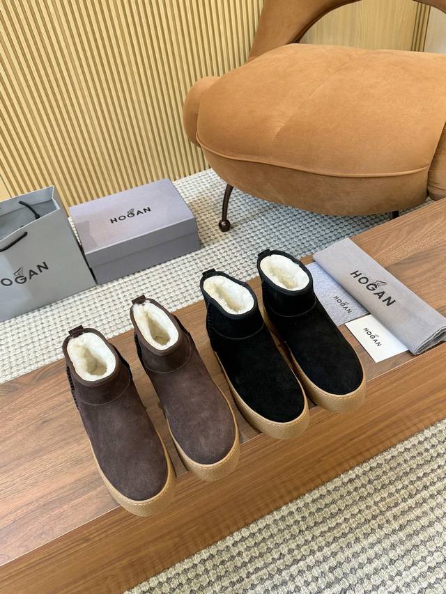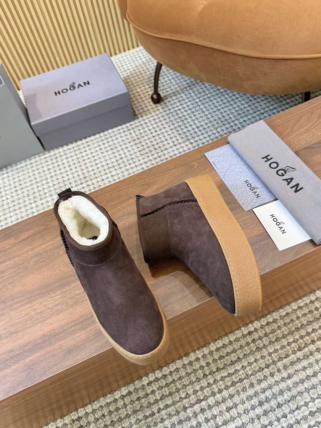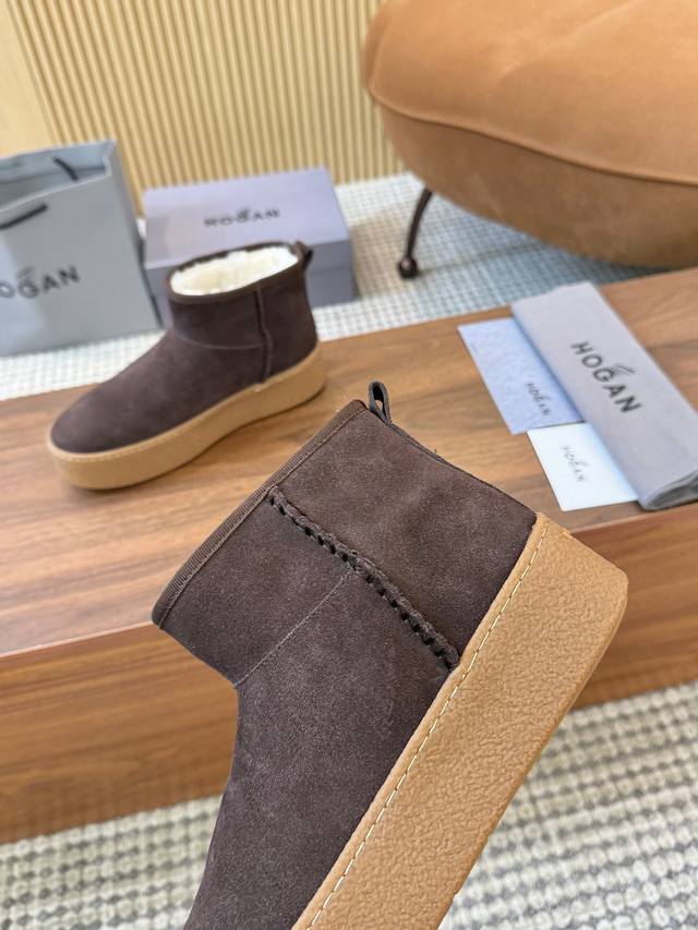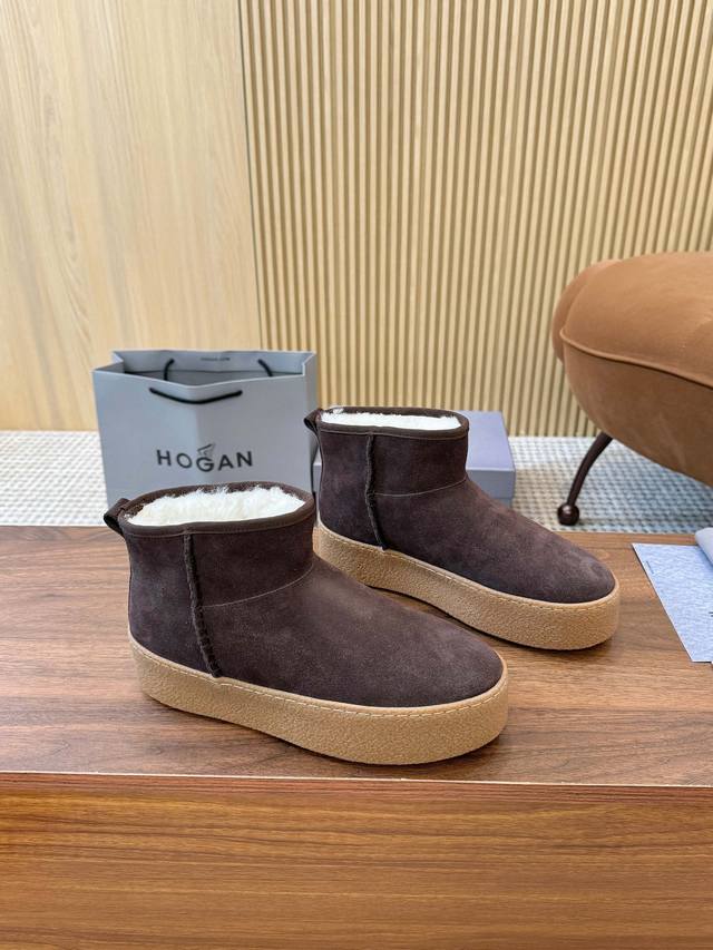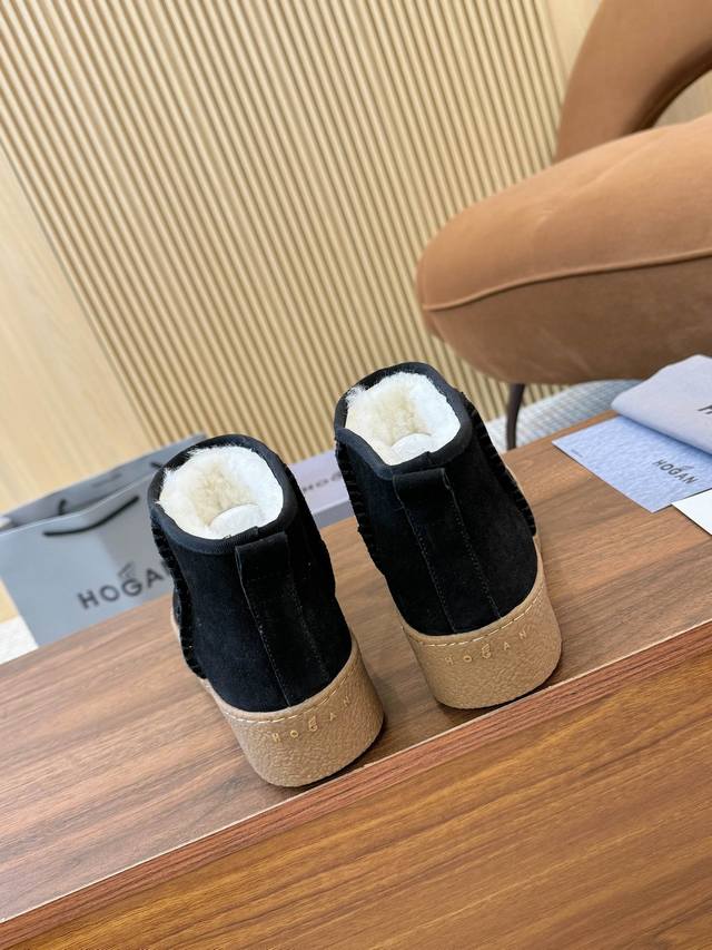 Hogan's newest style at an amazing price! Women's fashionable round-toe genuine leather and wool ankle boots, sporty and casual, with a thick sole that instantly adds 55mm in height. Hand-stitched suede calfskin, a modern minimalist aesthetic, a back pull tab, and a high-elastic insole for comfortable warmth and style. A classic and timeless genuine leather ankle boot, a must-have for every autumn and winter. Sizes 35-40 available. (DDD)