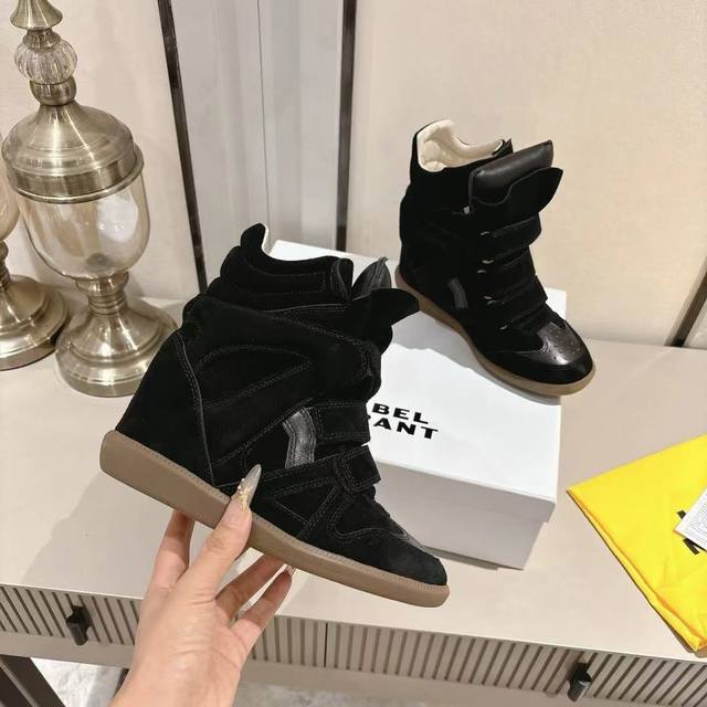 Isabel Marant's latest Fall/Winter high-top sneakers. A must-have for many celebrities, influencers, and bloggers! A simple yet sophisticated high-top sneaker, 1:1 replica with hidden stitching details and a great outsole! Exceptionally comfortable and versatile! Perfect for street style photos. Comfortable and stylish. 6cm inner lining. Original mold rubber outsole. Sizes: 35-42. 41 & 42 are custom-made and non-refundable.