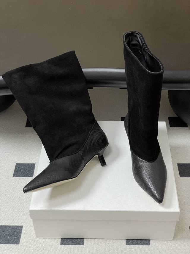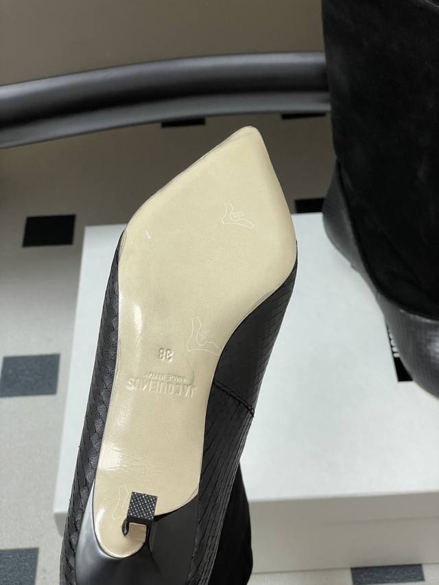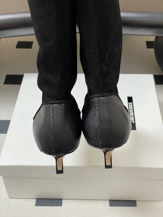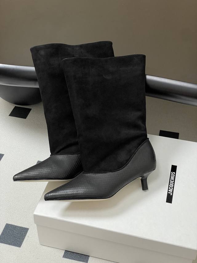 Jacquemus 25Fw Autumn/Winter New Patchwork Pointed Toe Stiletto Heel Mid-Calf Boots Kitten Heel Wide Boots
