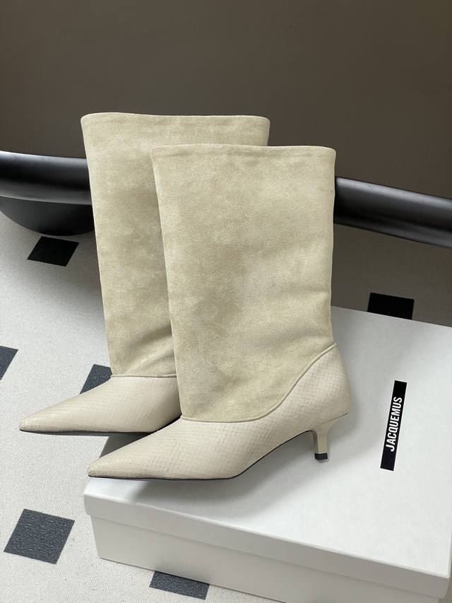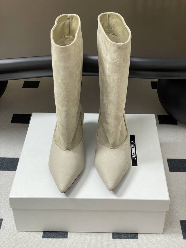 Jacquemus 25Fw Autumn/Winter New Patchwork Pointed Toe Stiletto Heel Mid-Calf Boots Kitten Heel Wide Boots