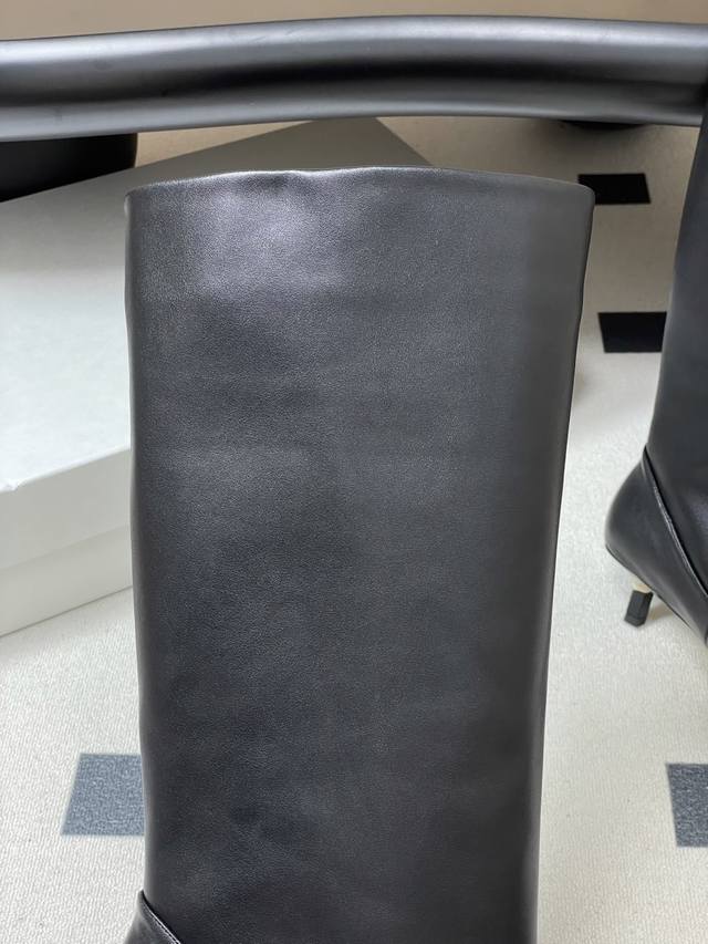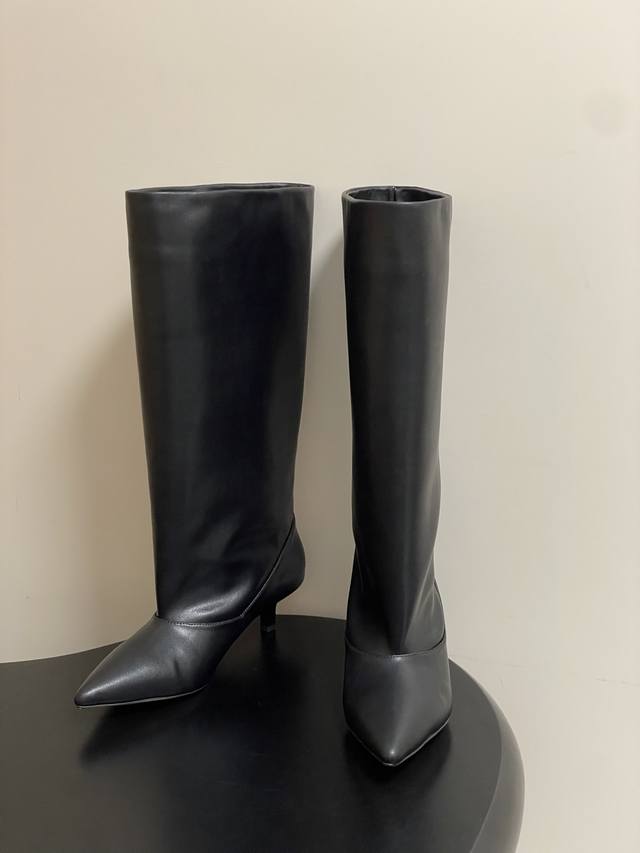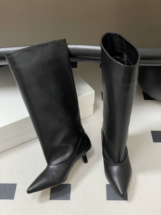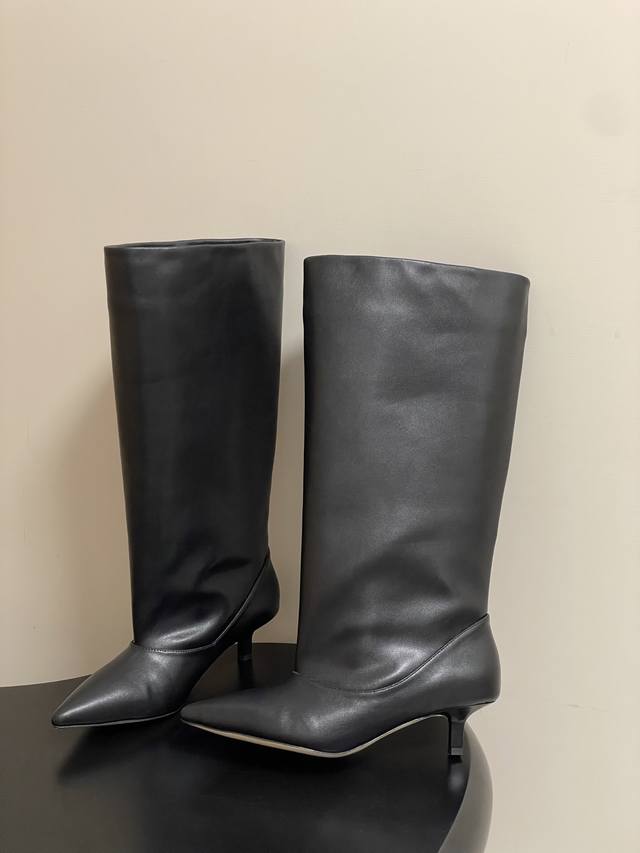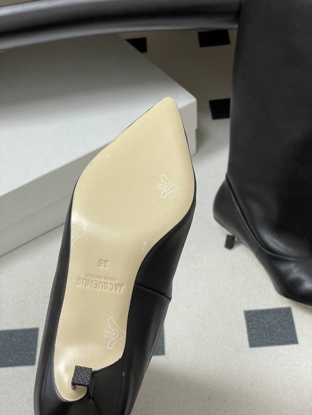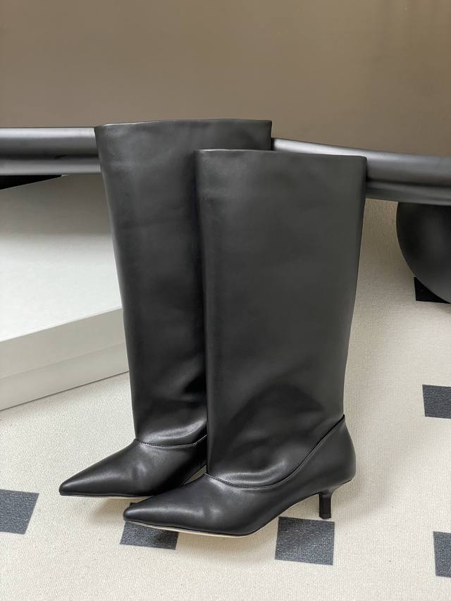 Jacquemus 25Fw Autumn/Winter New Pointed Toe Wide-Cuff Slip-on Low-Heeled Long Boots Kitten Heel Long Boots