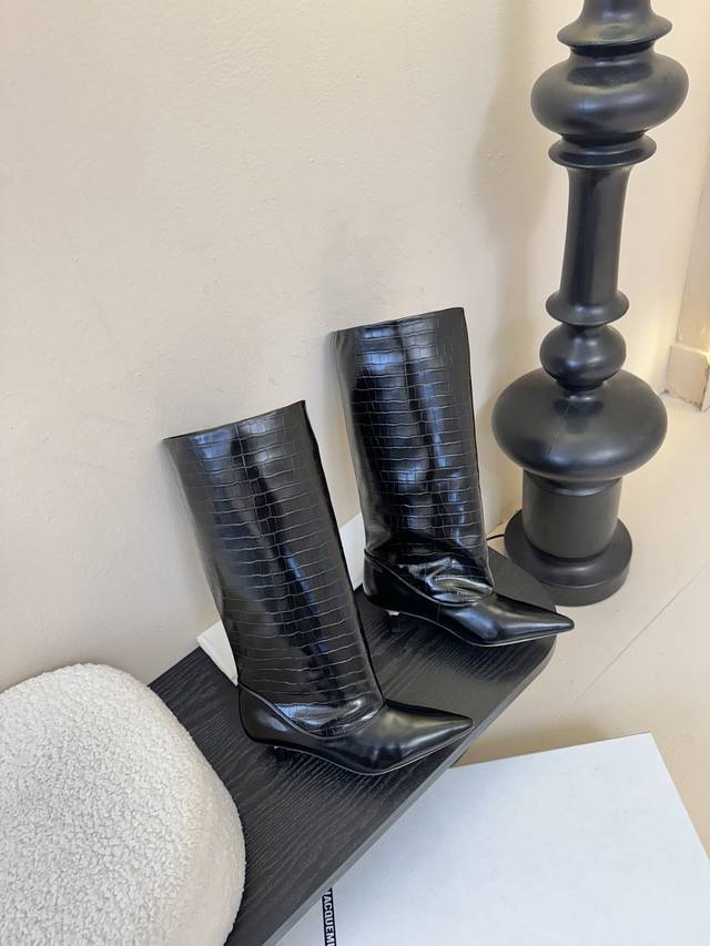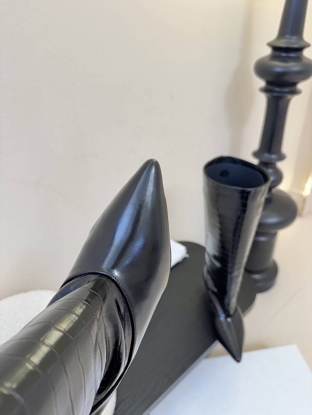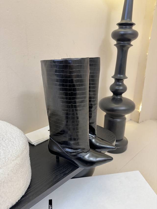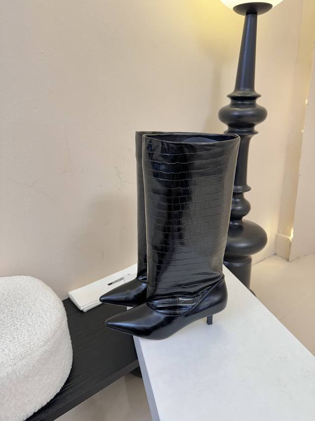 A "fashionable star" in the world of black knee-high boots! The sleek pointed toe and kitten heel with a large boot shaft are so striking, instantly making me the center of attention wherever I go!