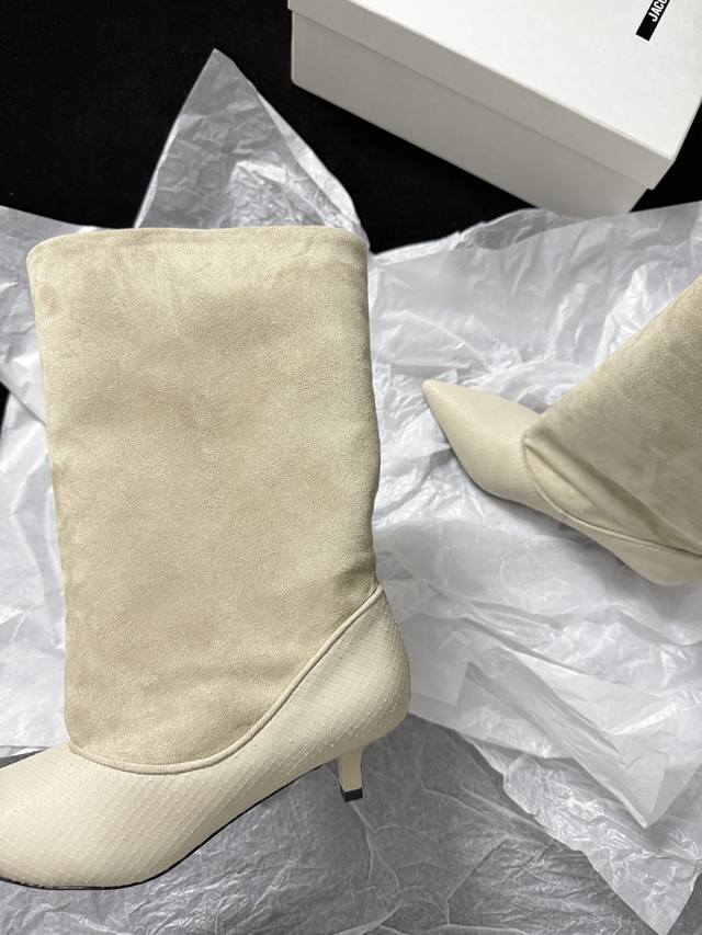 This pair of boots is really a masterpiece of suede and snakeskin stitching. The texture is high-end and layered. The pointed toe and stiletto heel perfectly capture the elegance and sexiness. Wearing them will make you a walking fashion focus and easily slay in various occasions