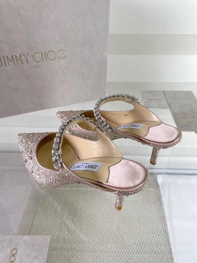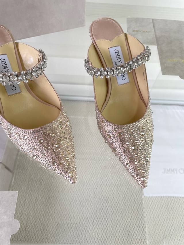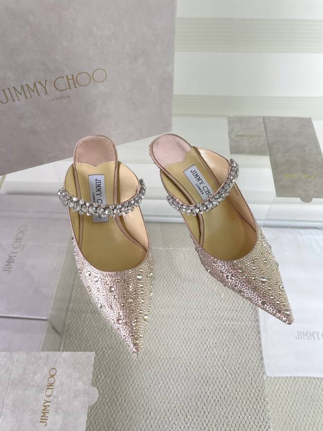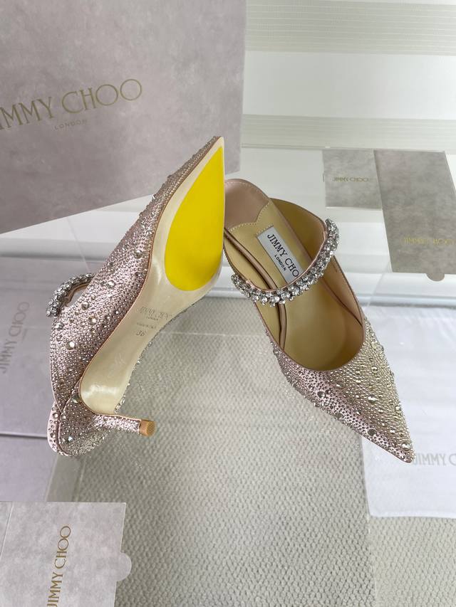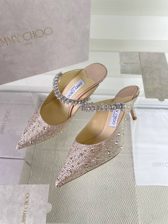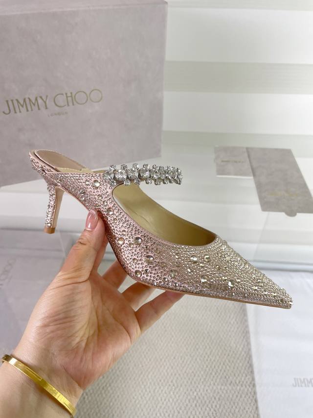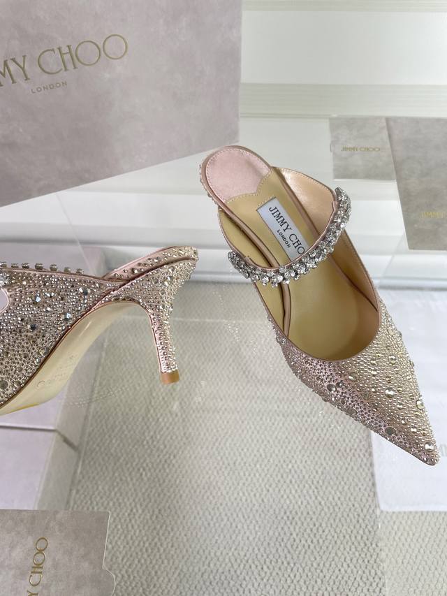Jimmy Choo classic diamond chain pointed toe crystal high-heeled slippers. These crystal slippers are so stunning you can't take your eyes off them. The shoe's shape is incredibly delicate, not too narrow or long. The interior offers ample room for your toes. The rhinestones create a captivating curve on the instep, which is simply stunning. The 360-degree wraparound, ethereal feel is gorgeous yet elegant. Made from imported sheepskin with rhinestones, the shoe features a custom-made, A-grade Italian leather sole. Heel height: 6.5cm. Sizes: 35-39, 40, and 41. Custom sizes are non-refundable.