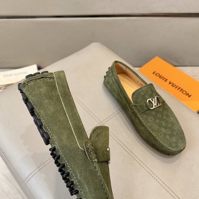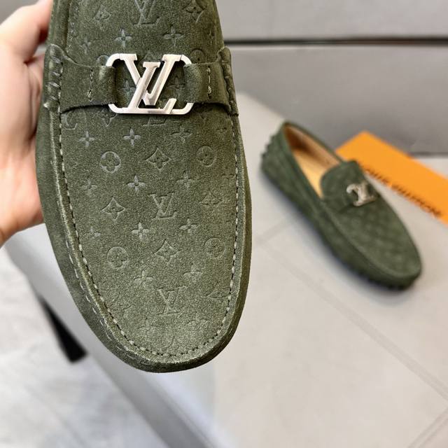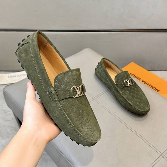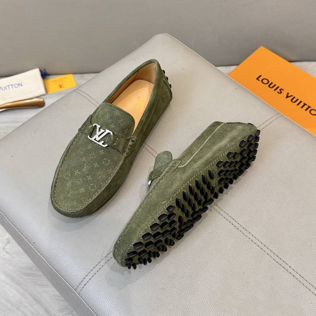 L Men's Gommino 2025 Official Website Synchronous Market Top Version Imported First Layer Nubuck Leather Embossed Apricot Denim Lining Original Packaging. Sizes 38-45