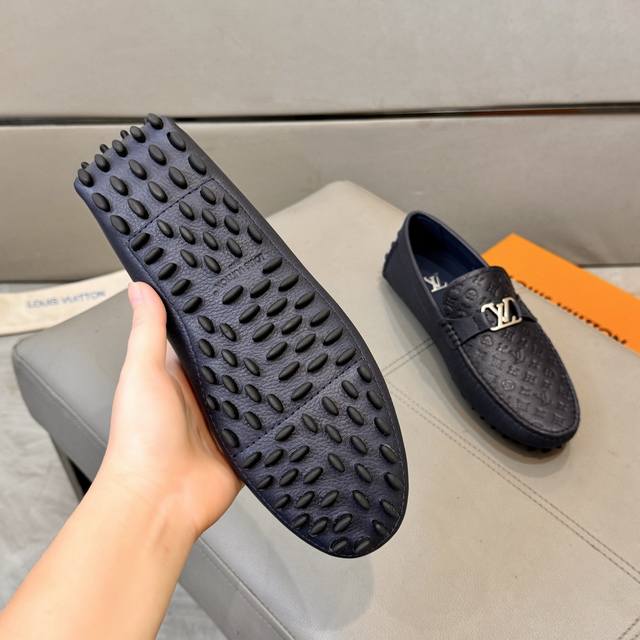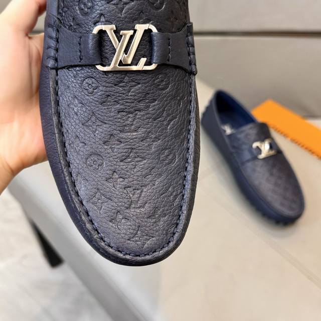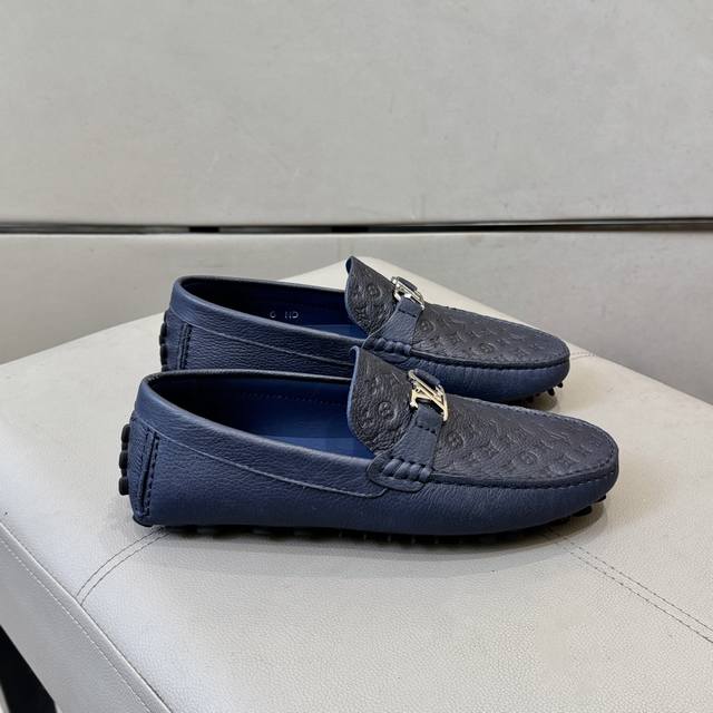 L Men's Gommino 2025 Official Website Synchronous Market Top Version Imported First Layer Litchi Embossed Blue Denim Lining Original Packaging. Sizes 38-45