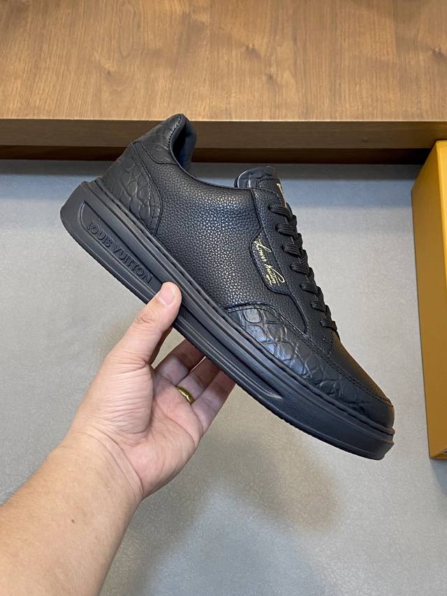 L New men's high-end casual sports shoes, made with imported top-grain cowhide with Lougou branding, original ultra-lightweight TPU outsole, wear-resistant and comfortable, Monogram Lougou accent rubber outsole, breathable mesh lining, versatile classic style! Sizes: 38-44, 45, 46. Custom orders available.