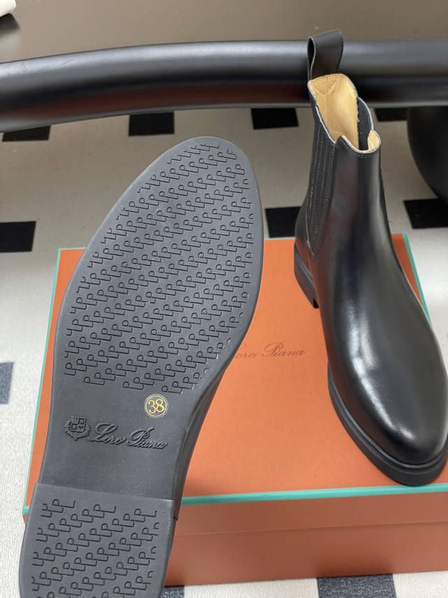 Loro Piana Lp60S Autumn/Winter New Horseriding Ankle Boots with Elastic Band Chelsea Short Boots. These Horseriding ankle boots from the Loro Highlands capsule collection are crafted from smooth cowhide leather, encapsulating the elegant essence of riding boots in a shorter, more versatile style. Features side elastic bands and a heel pull tab for easy on and off without sacrificing structure. Whether worn alone as an equestrian-style accessory or paired with matching gaiters, they are a sophisticated choice for the transitional seasons. Upper: Cowhide Leather; Insole: Cowhide Leather; Outsole: Original Molded Rubber Outsole; Sizes: 35-39; Sizes 40 and 41 are custom-made and non-refundable.