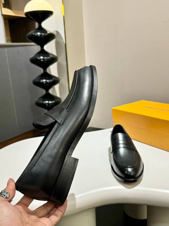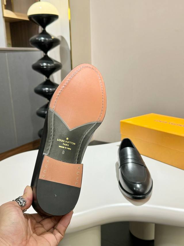 LV~ High-end men's formal and casual leather shoes, classic style, high-end and sophisticated, made of imported cowhide, breathable calfskin lining, genuine leather outsole, top quality! Sizes: 39-44, 38, 45, 46 (custom made).
