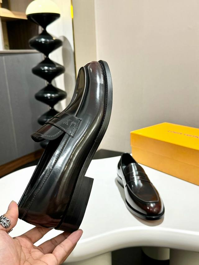 LV~ High-end men's formal and casual leather shoes, classic style, high-end and sophisticated, made of imported cowhide, breathable calfskin lining, genuine leather outsole, top quality! Sizes: 39-44, 38, 45, 46 (custom made).