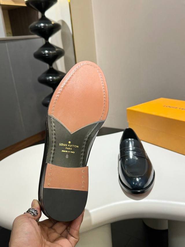 LV~ High-end men's formal and casual leather shoes, classic style, high-end and sophisticated, made of imported cowhide, breathable calfskin lining, genuine leather outsole, top quality! Sizes: 39-44, 38, 45, 46 (custom made).